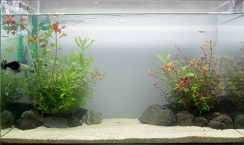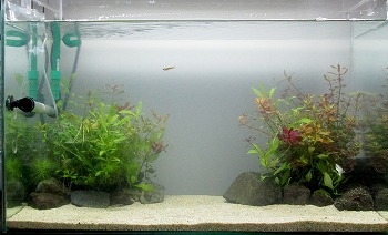 まだ、バクテリアなどの水が安定していないので少し濁っていますが、そろそろキレイになってくる頃です。