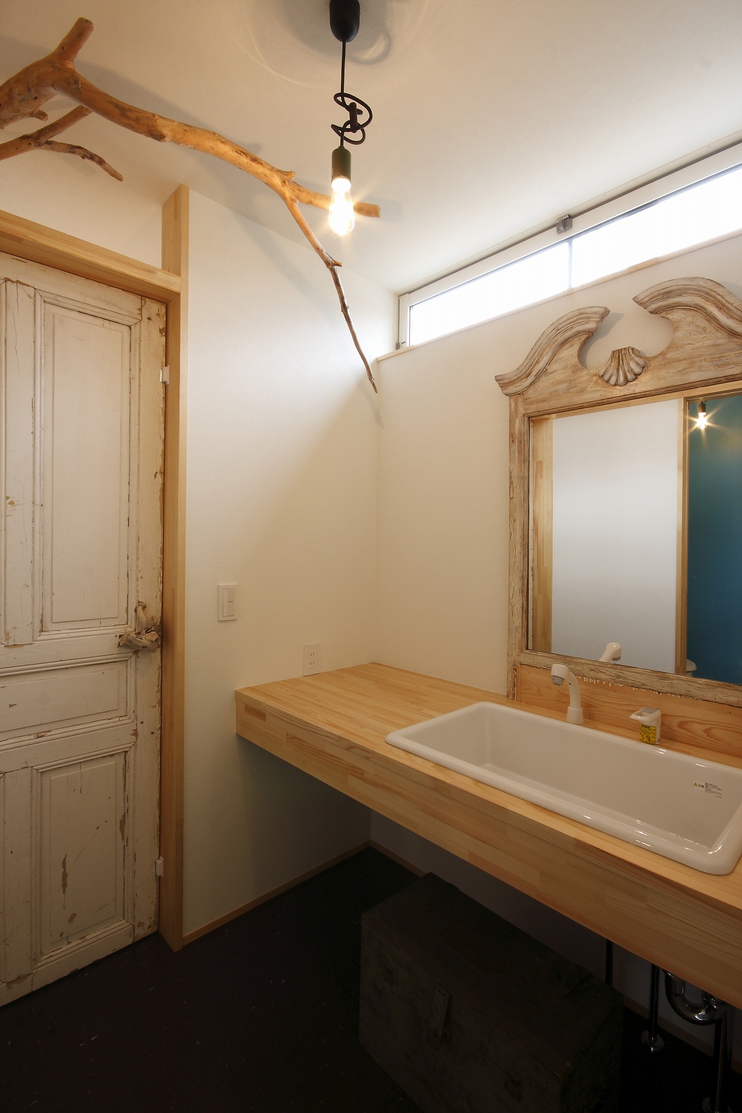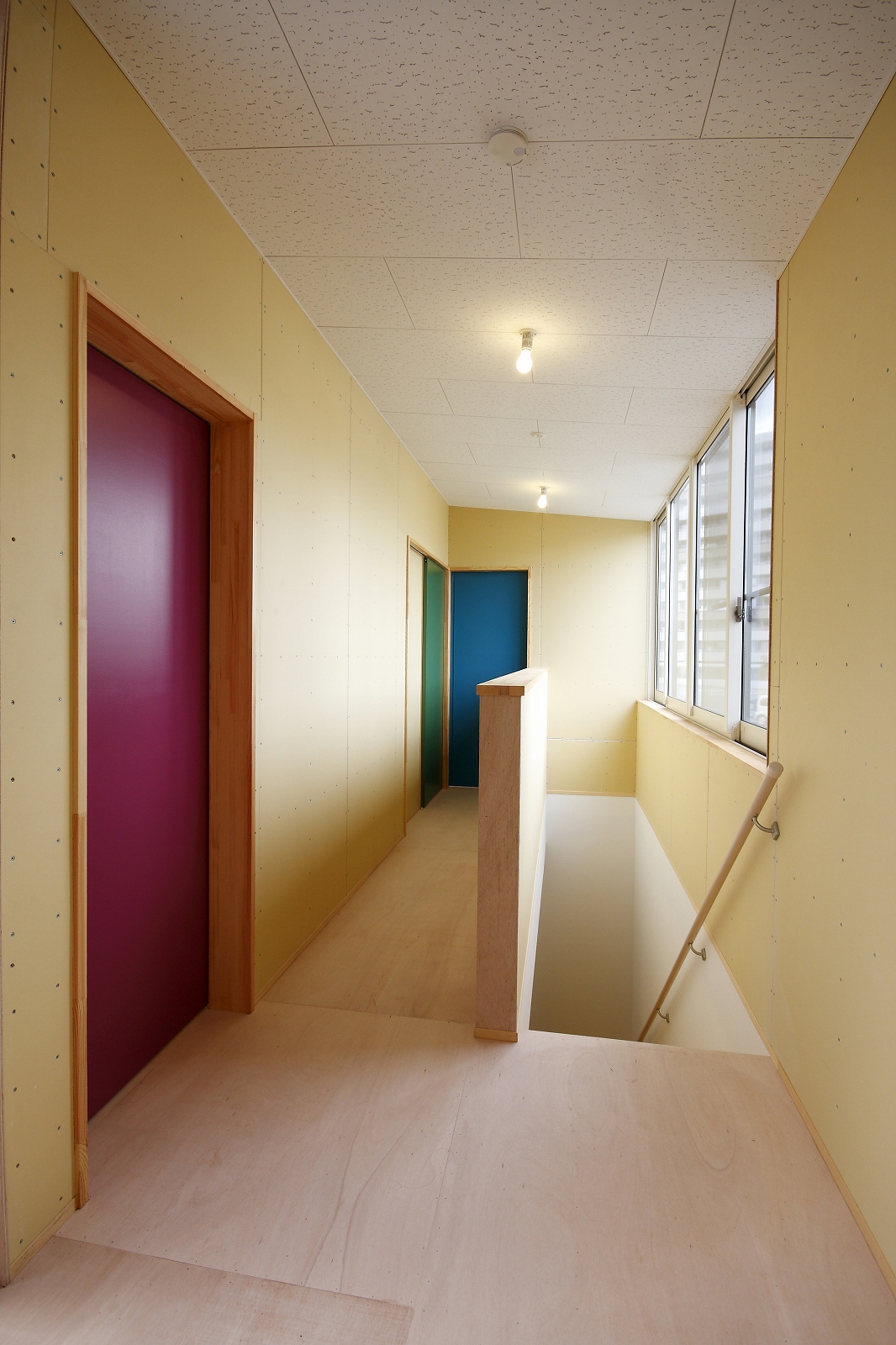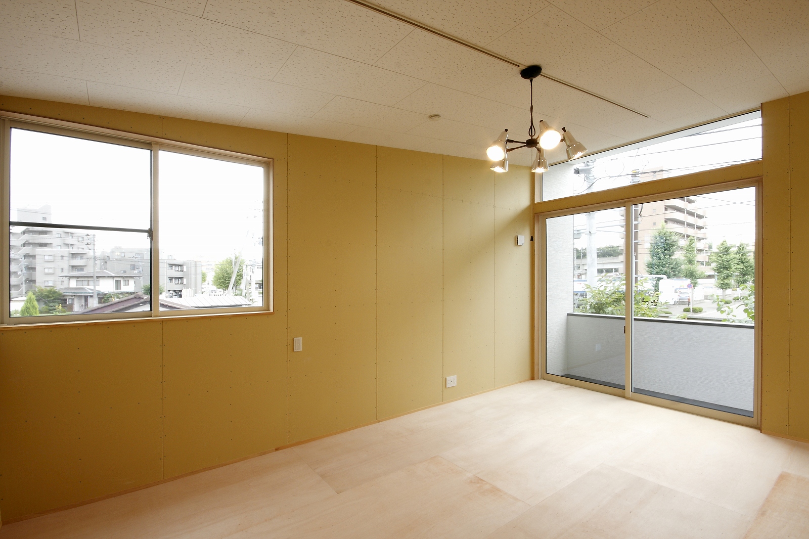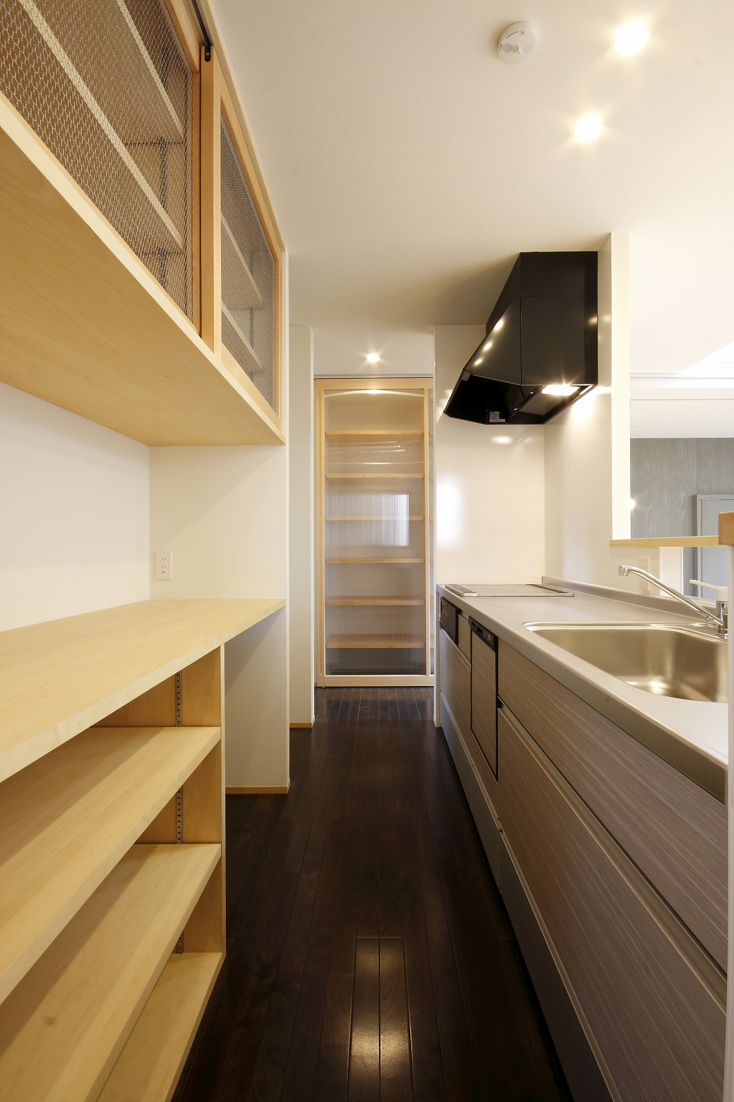 計画地は仙台市泉区の幹線道路に面している敷地で既存住宅の建替えである。当初リフォームのご相談をしていたが、話をしているうちに建替えとなった。オーナー様からは、お客様を持て成す空間として通り土間を設ける、桜が見えるようにしたい、息子さんからインナーガレージが欲しいとの要望があった。その要望から、通り土間と2階のテラスを軸に建物を構成した。桜の正面に通り土間、テラスを設け、子供世帯と親世帯を左右で分けた。子供世帯へはガレージ、通り土間から直接アクセスできるようになっている。通り土間には大きいカウンターを設け、お客さんが来たときには靴を履いたまま、話が出来るようにした。2階は、子供世帯が今後自由に内装を行なうことが出来るように未完としている。また、2階はプライベートな空間となるため、窓の配置に注意し外部からの視線をあまり気にすることなく生活できるようにした。