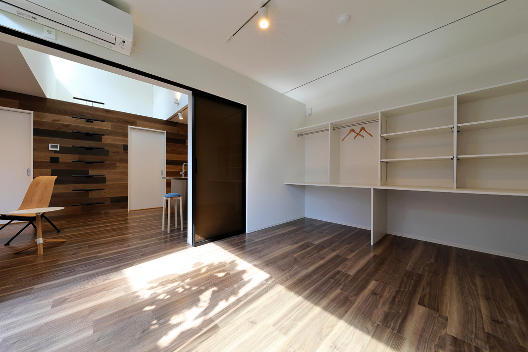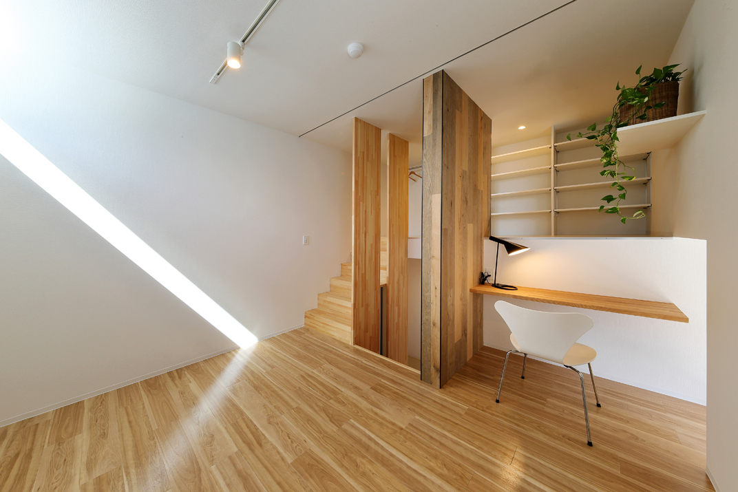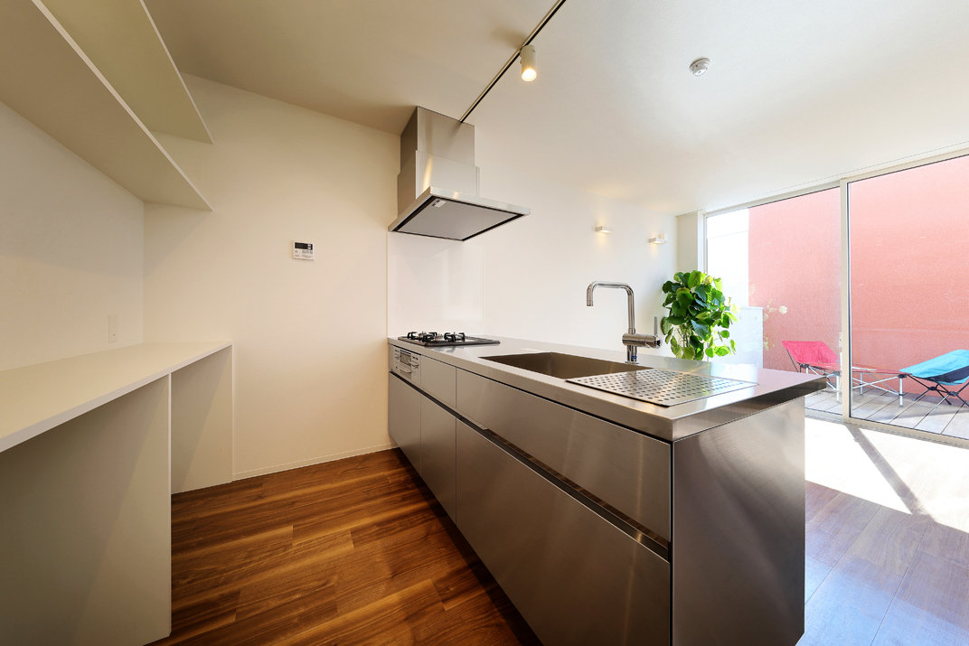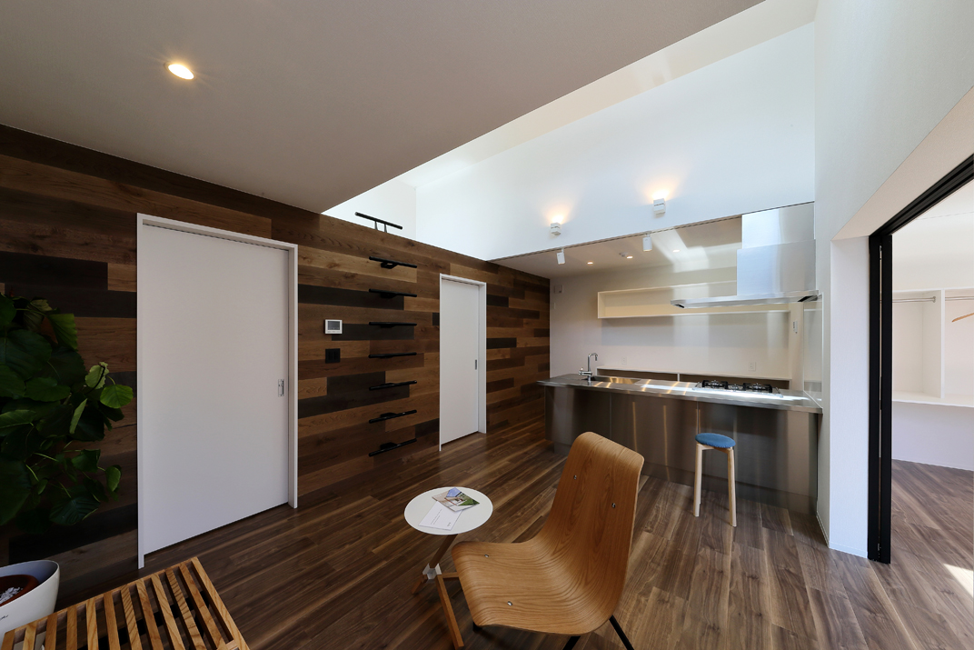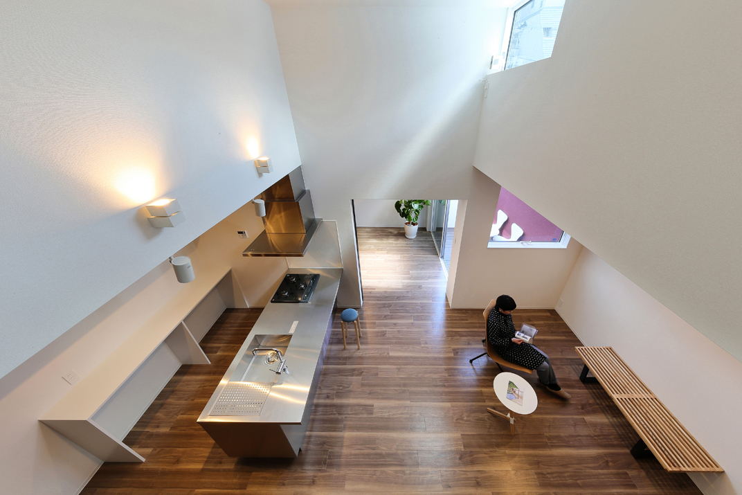 住戸の計画については南北に長い建物形状で採光を確保しつつ、商業施設の上階ながらもプライバシーが確保された空間を目指した。構造とのバランスで大小様々なテラスを計画することで南の採光を取り入れる工夫をしている。最上階ということもあり、賃貸では珍しい吹き抜け空間を提案した。このことによってBOXの凹凸のある外観を形成しているとともに採光・通風を確保できる開口部を計画できた。