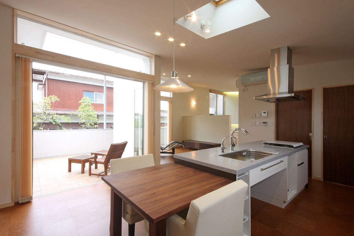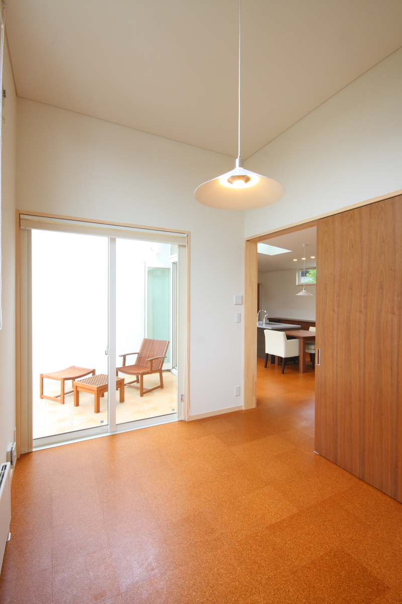又、家族の一員である2匹の犬には専用のドックヤードとテラス空間を自由に走り回れる様、専用の出入り口を設けました。