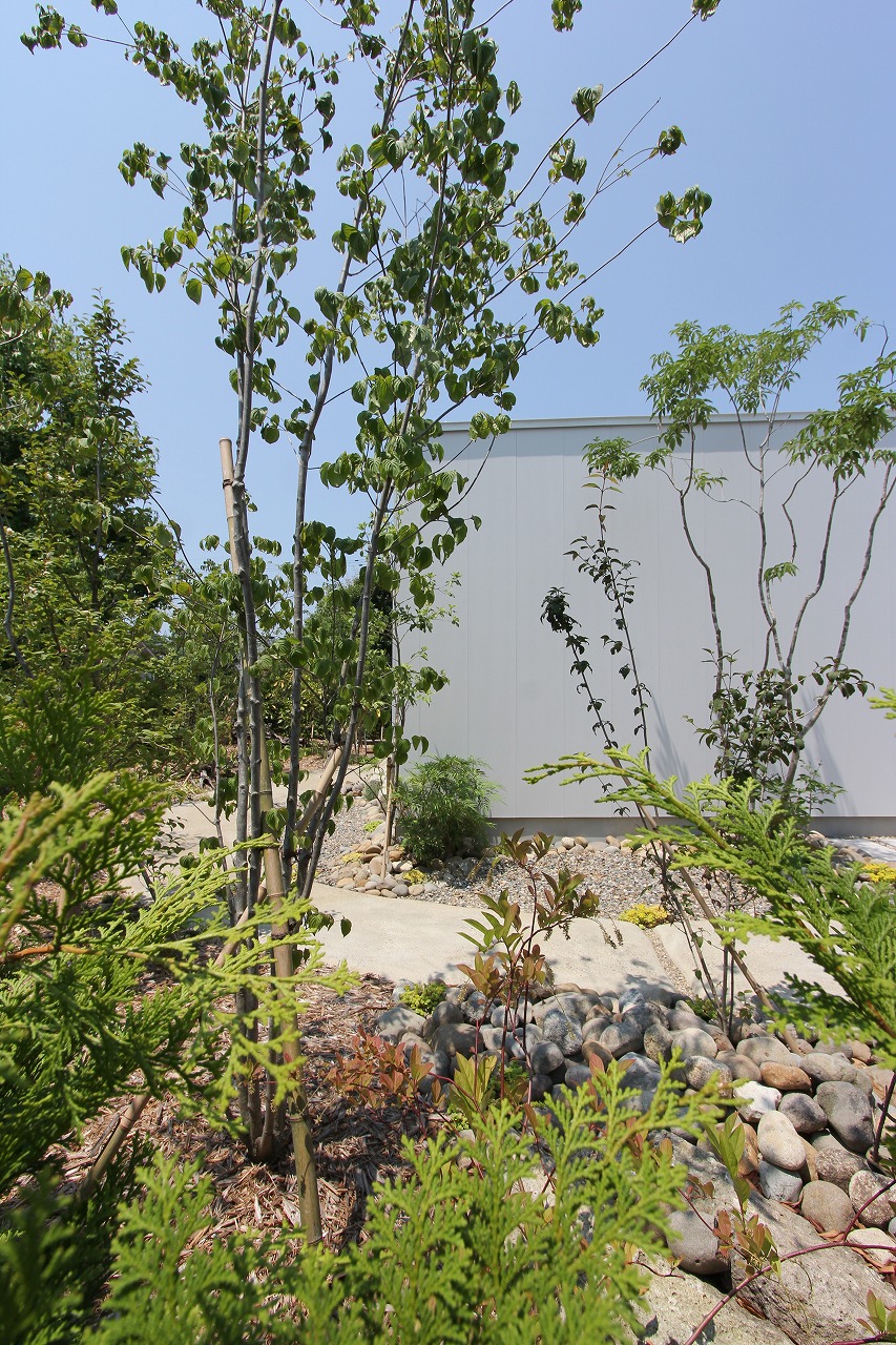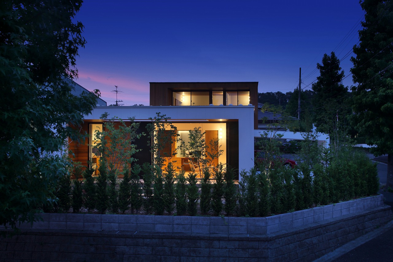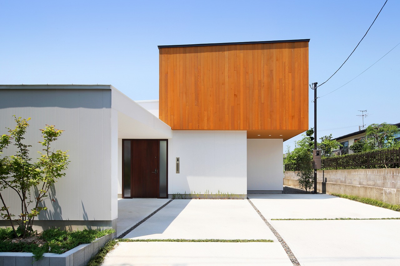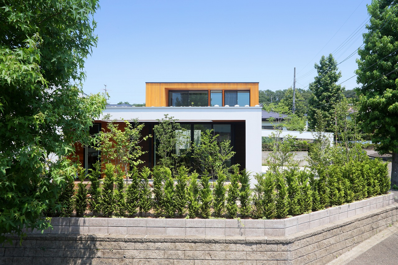 計画地は閑静な住宅街で、2面道路に接した角地にあります。古い家を建て替え、子育てを終えた夫婦で暮らす住宅を計画しました。間取りは1階に主要室をすべてまとめ、2階は収納と家族の帰省時に利用できるベッドルームを設けています。