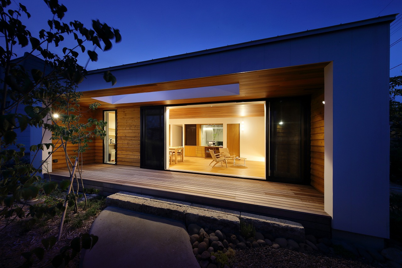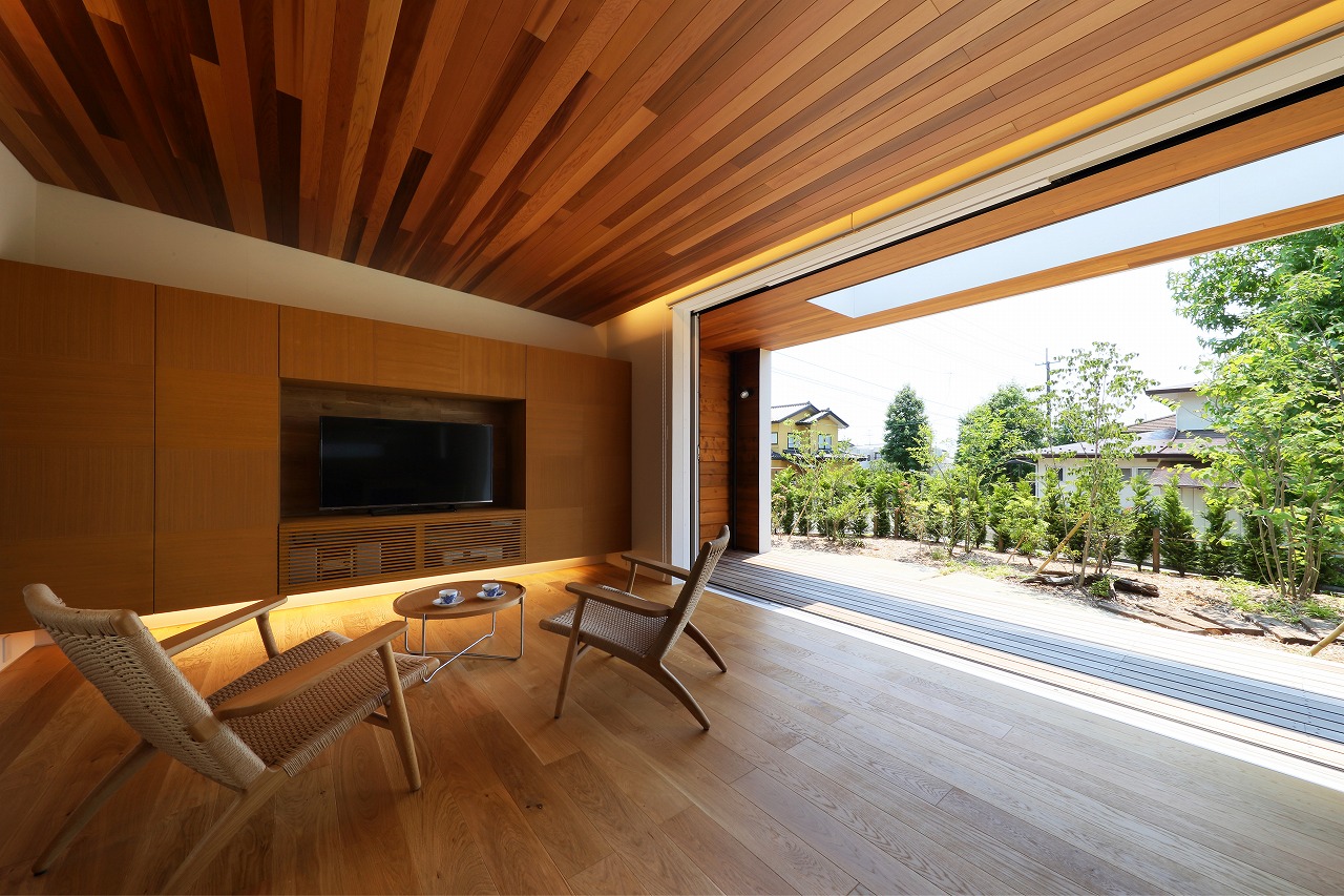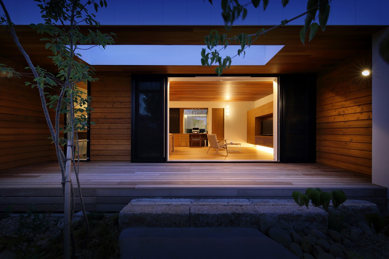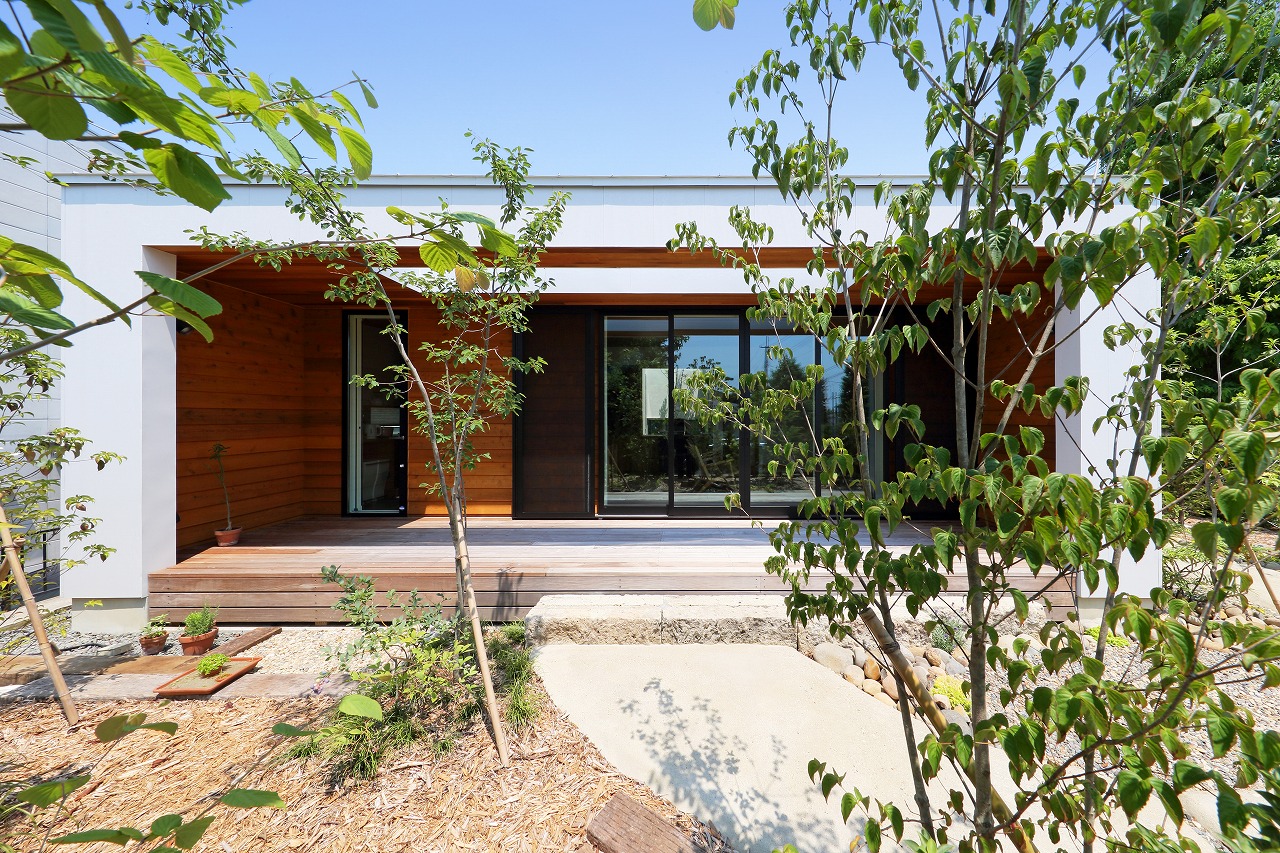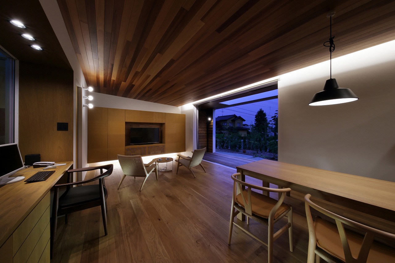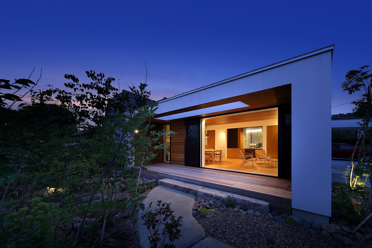 家事動線をコンパクトにし、光庭を中心に回遊性のある動線となっています。光庭を設けることで、北側に配置された寝室に白い外壁に反射されたやわらかい南の光を運んでくれます。また、玄関・LDK・寝室・トイレと4室に光庭が面する事で、それぞれの空間に広がりや演出、換気など様々な効果をもたらしてくれます。延床面積29.5坪とコンパクトながらも狭さを感じさせないためにも光庭が重要な役割を果たしています。