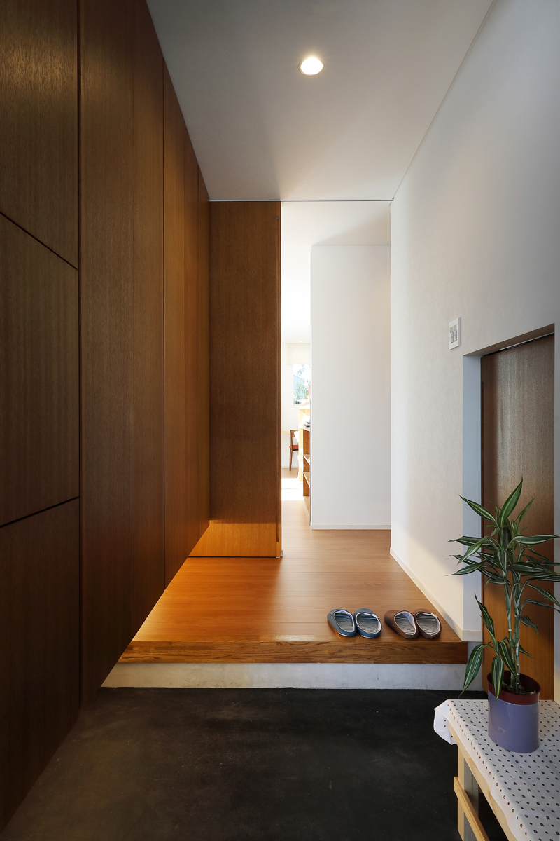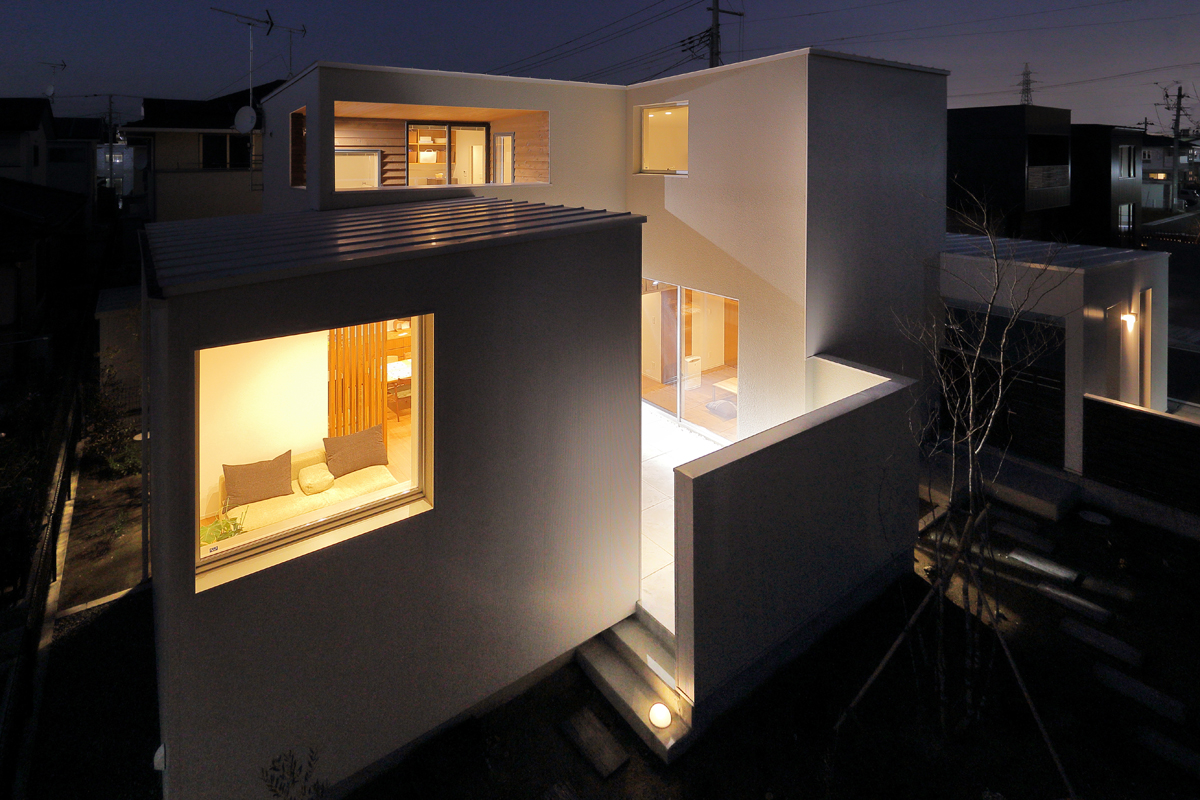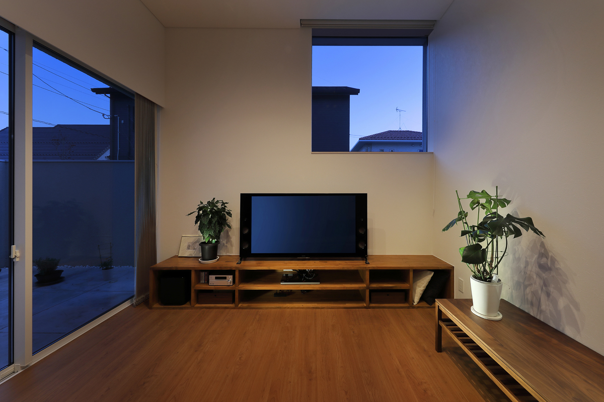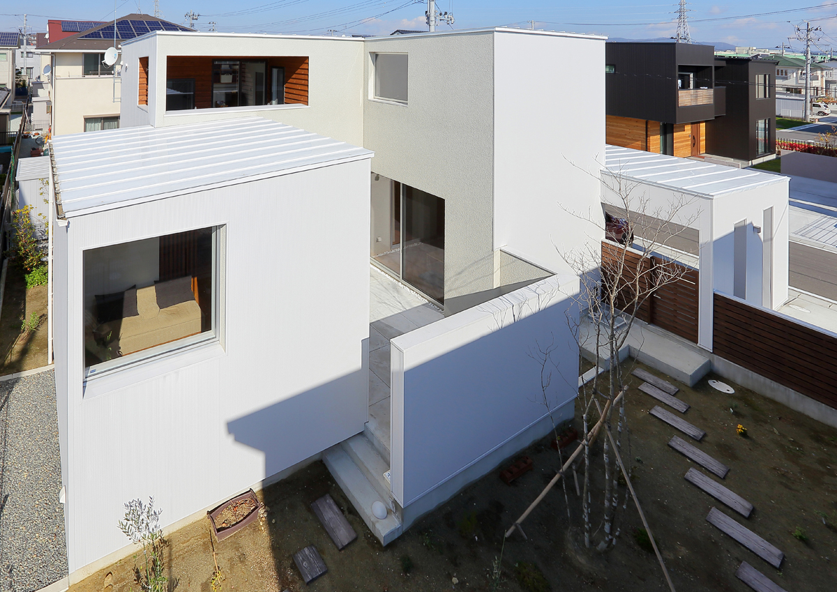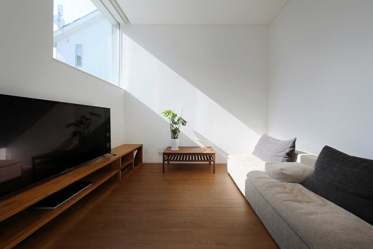 計画地は、東日本大震災で被災された方々のための代替地です。お客様が抽選で得た敷地は東側接道で、西南北側が宅地になっている場所でした。そこに住む家族のためのコンパクトで機能的な住宅が求められました。