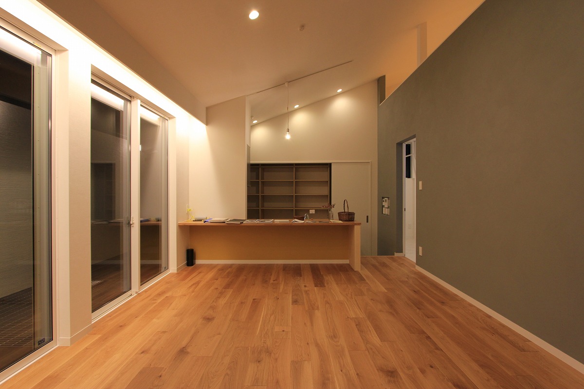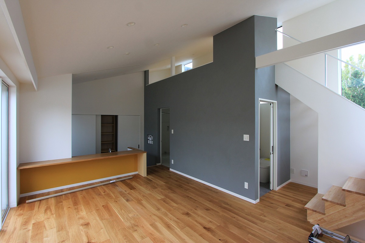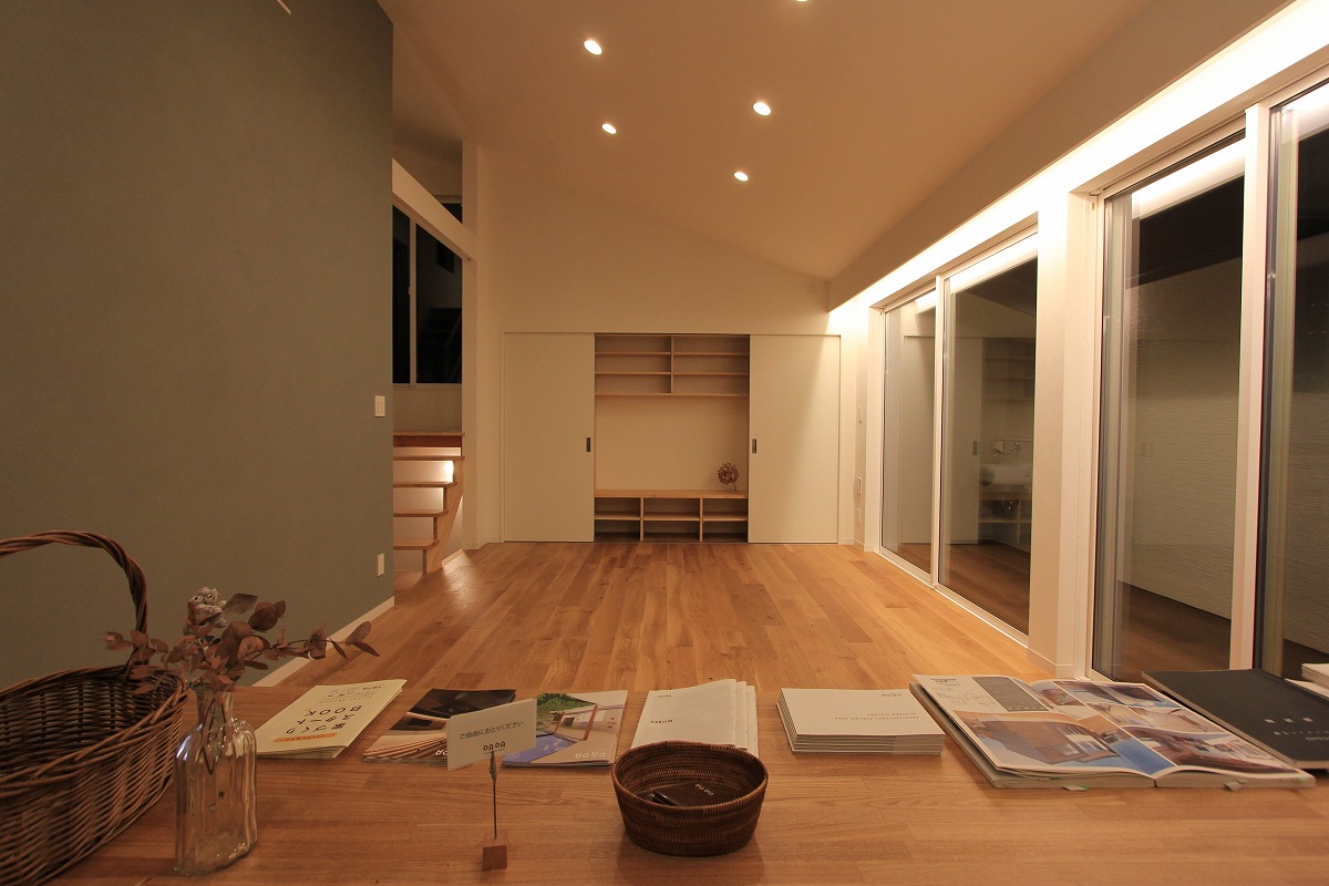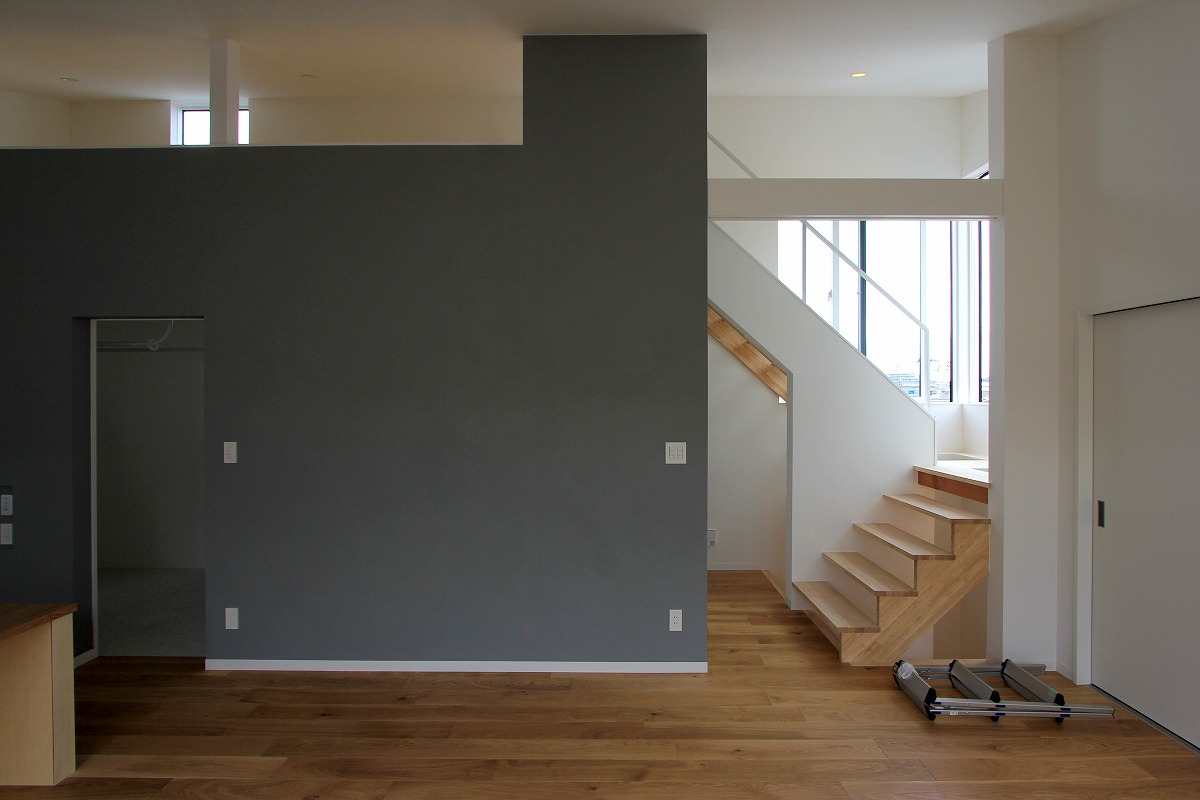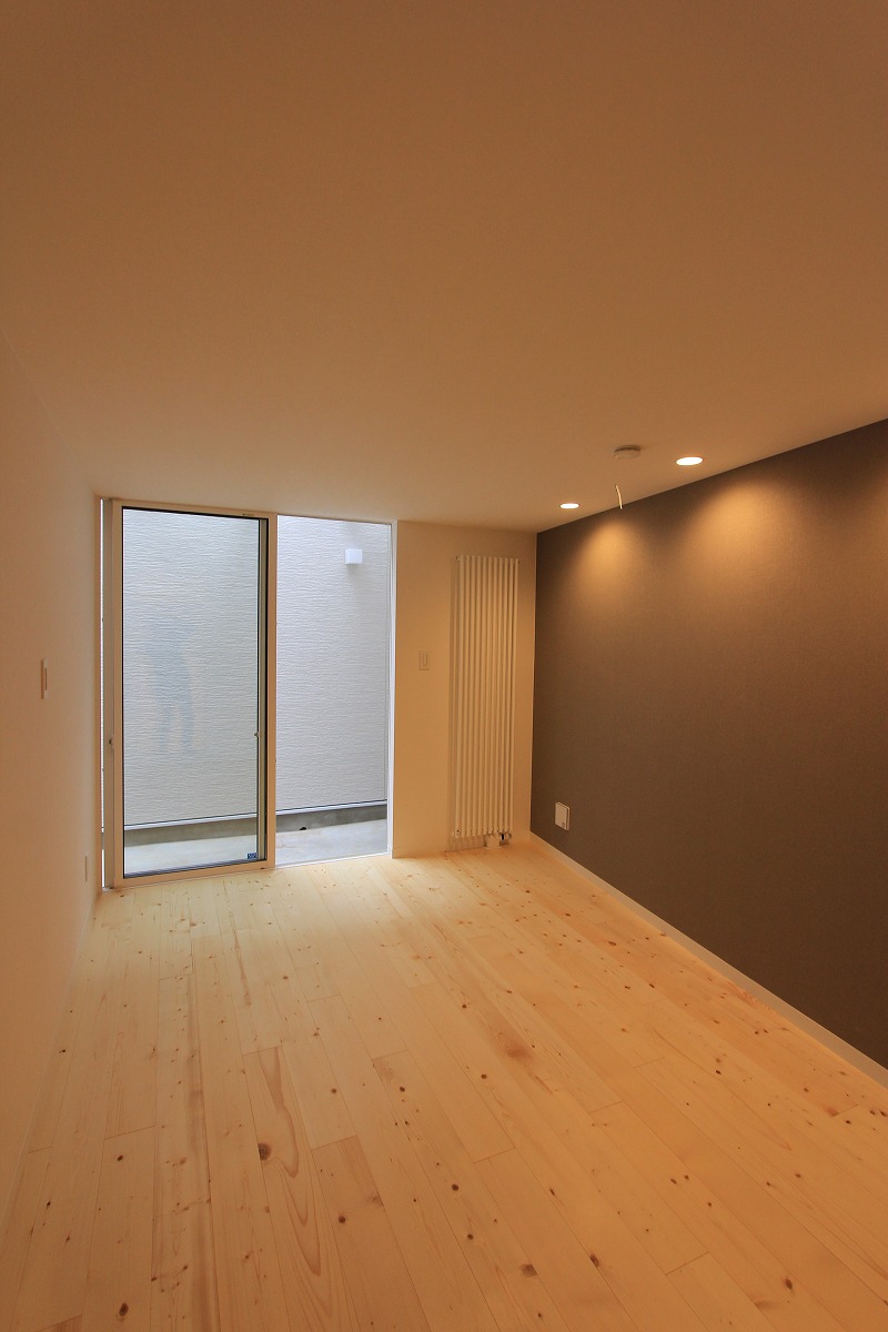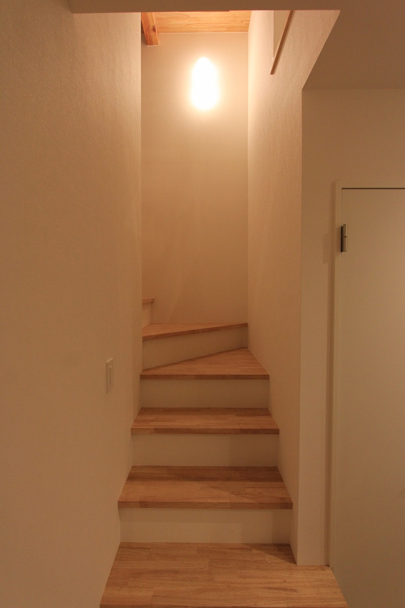 外に庭を設けても利用価値が望めないことから、建物の内部に庭(ライトコート)を設け、周囲からの視線を気にせず過ごせるスペースに。囲まれた壁に光が拡散し、室内に明るさを届けます。また、環境が良い2階部分はメインの生活空間を配置し、1階は寝室・収納としています。ライトコートが風や光を通し、コンパクトな室内で自分たちだけの外部空間として感じられる場所となりました。