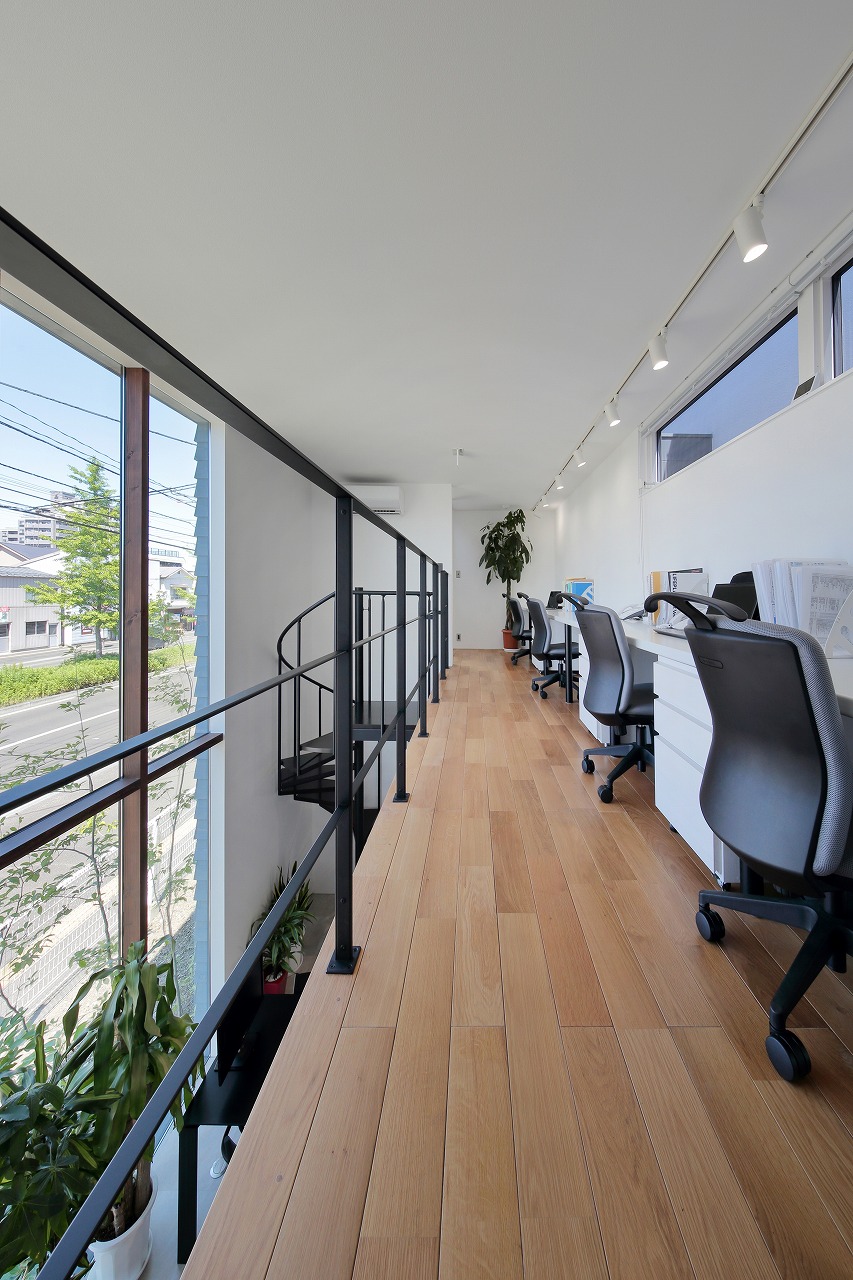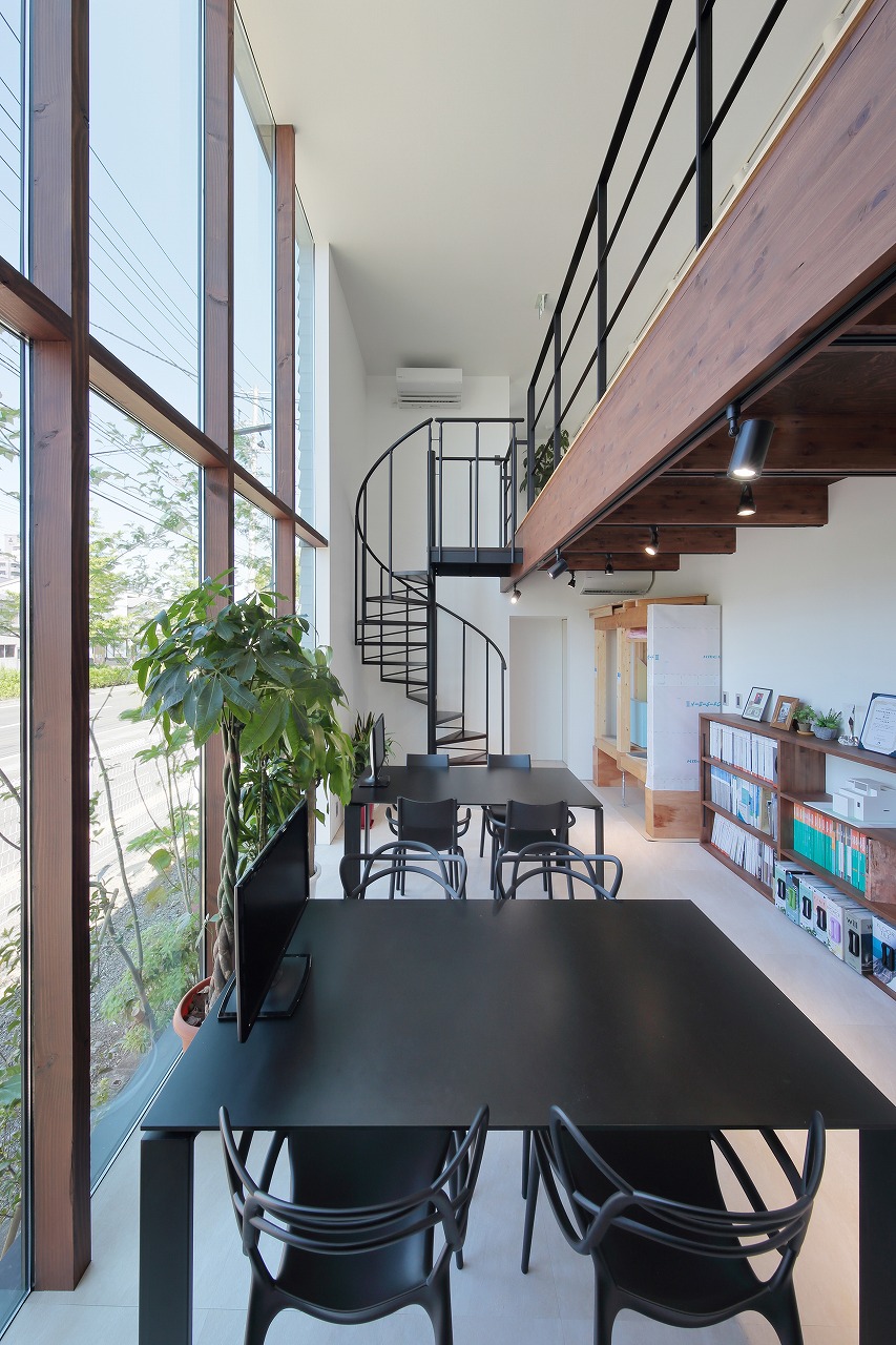 また、事務所棟と外部テラスでつながっているのでお互いの視線も考慮しています。
