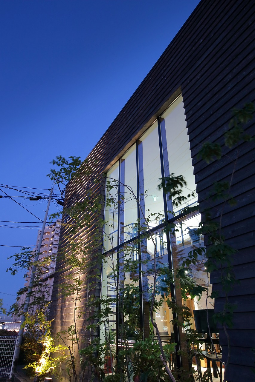 大通りに面した位置に延焼のラインを検討した位置にカーテンウォールを計画し、内部の雰囲気が外につながるようにしました。
