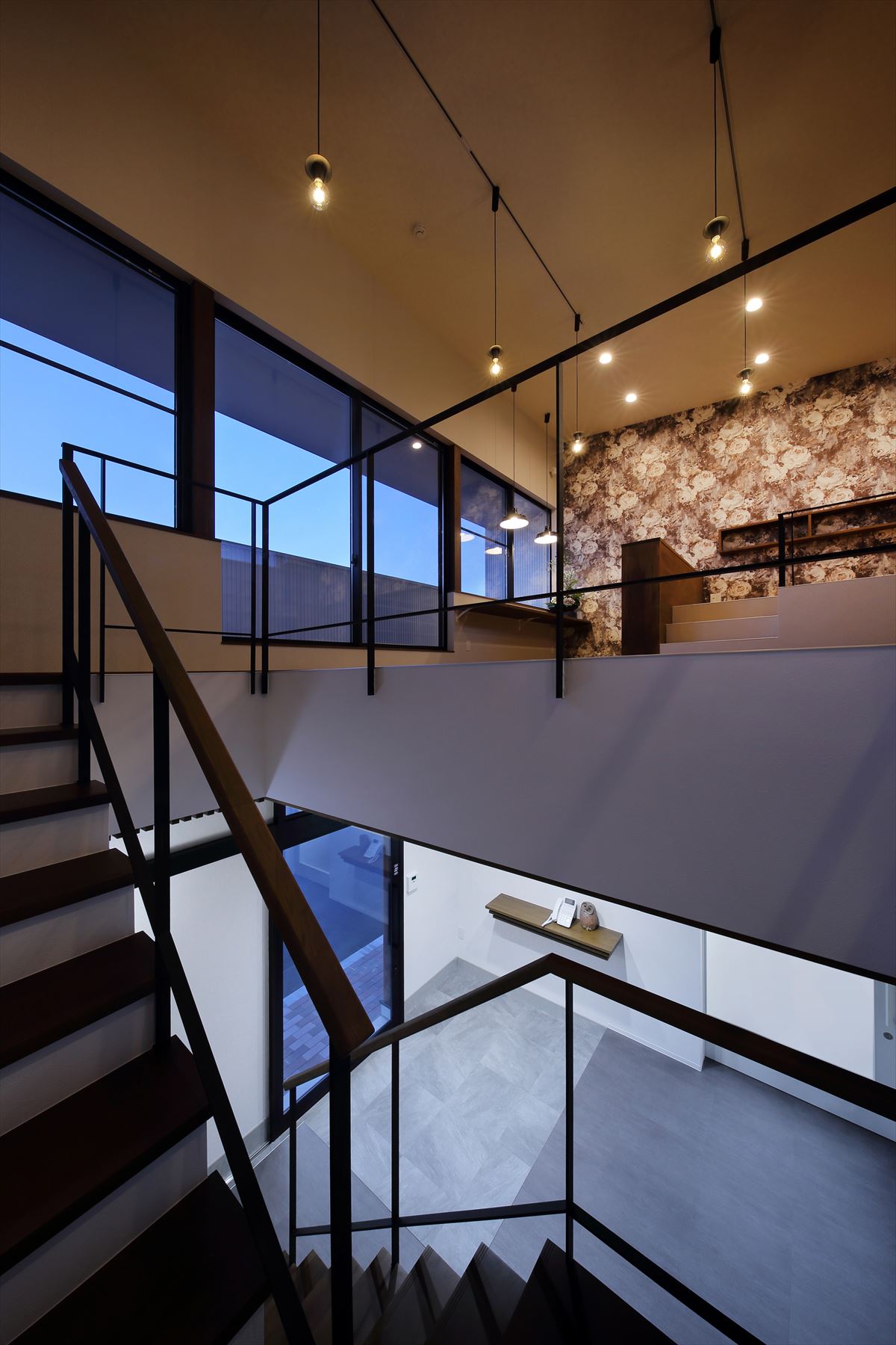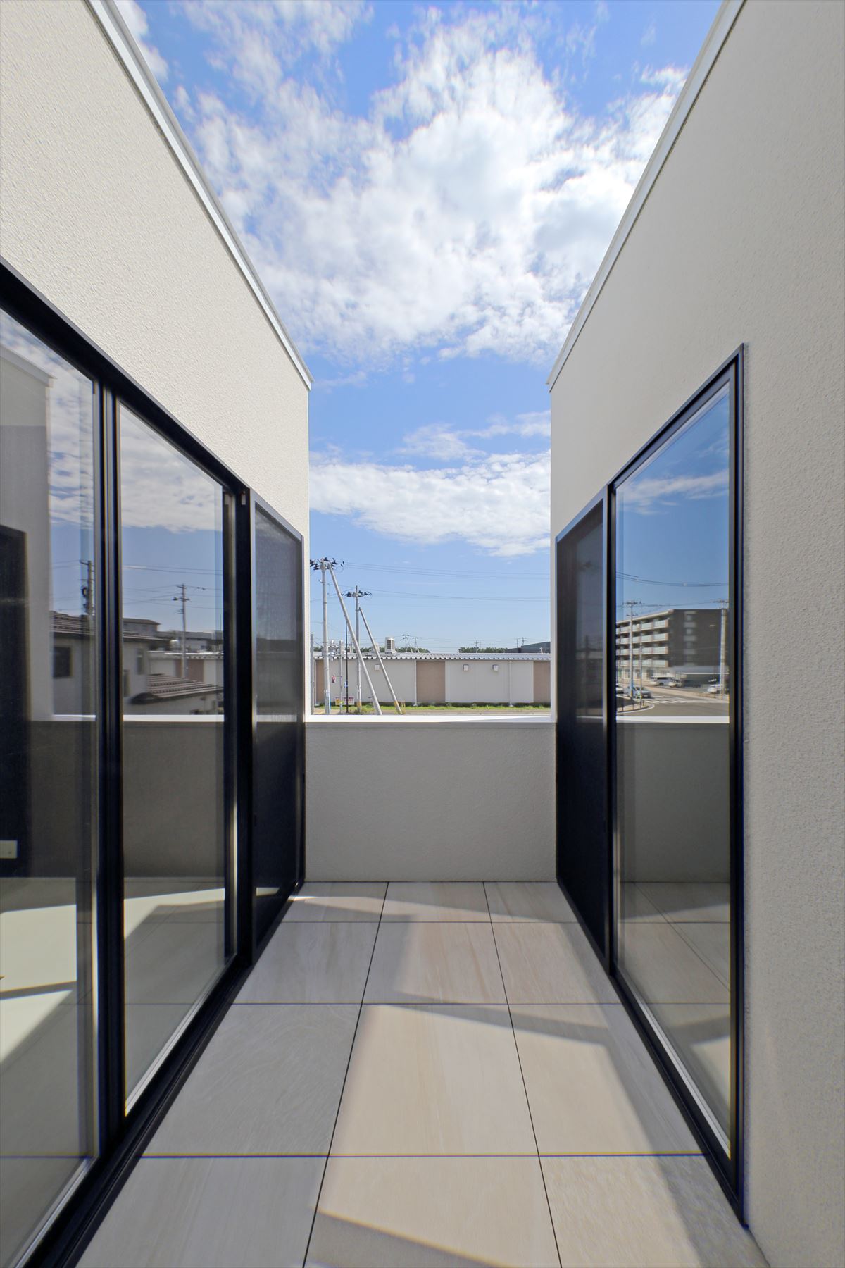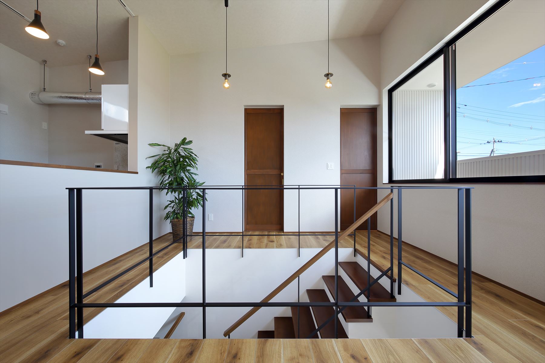 外観は2階のボリュームをオーバーハングさせることでメリハリをつけ、1階の共用通路の庇としての意味も持たせています