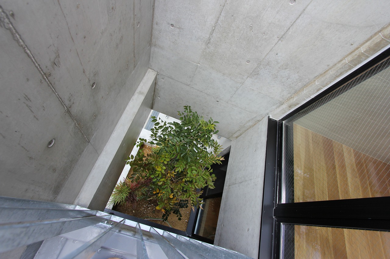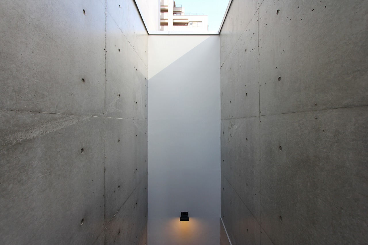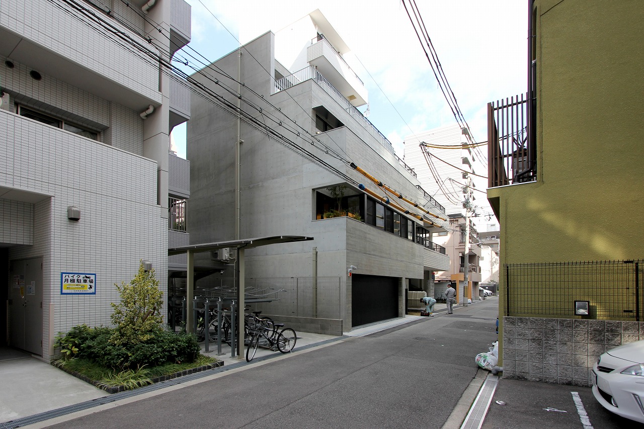 計画地は都心部の商業施設と住居の混ざる場所であり、高層ビルも多くある。その様な都心部の30坪の土地に4階建ての住居を計画した。
