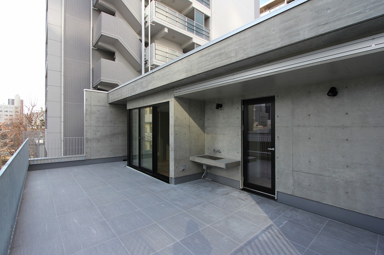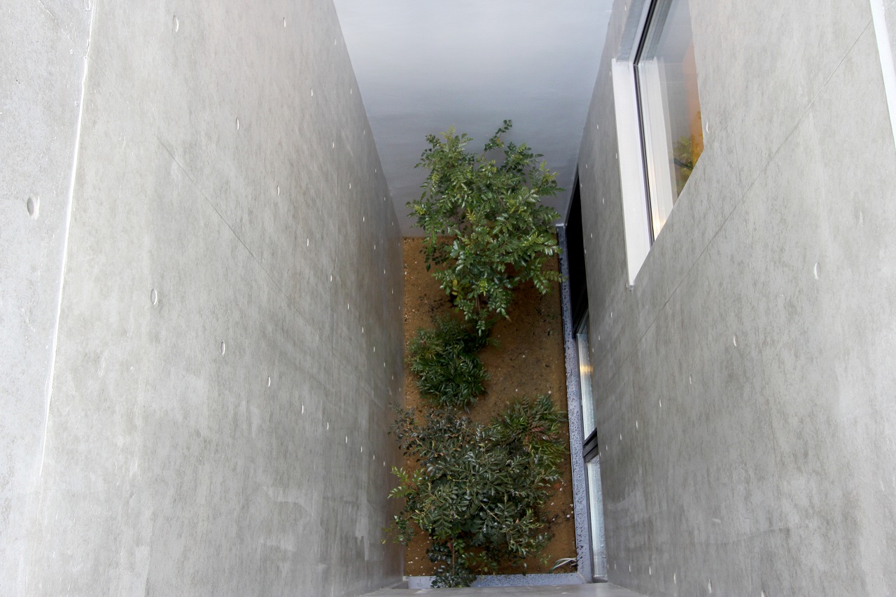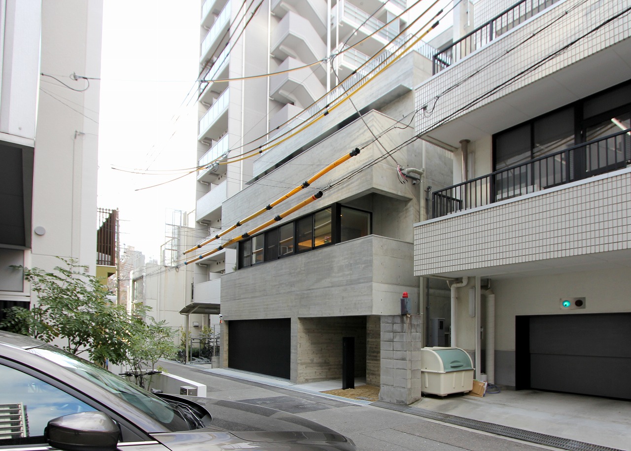 計画地は都心部の商業施設と住居の混ざる場所であり、高層ビルも多くある。その様な都心部の30坪の土地に4階建ての住居を計画した。