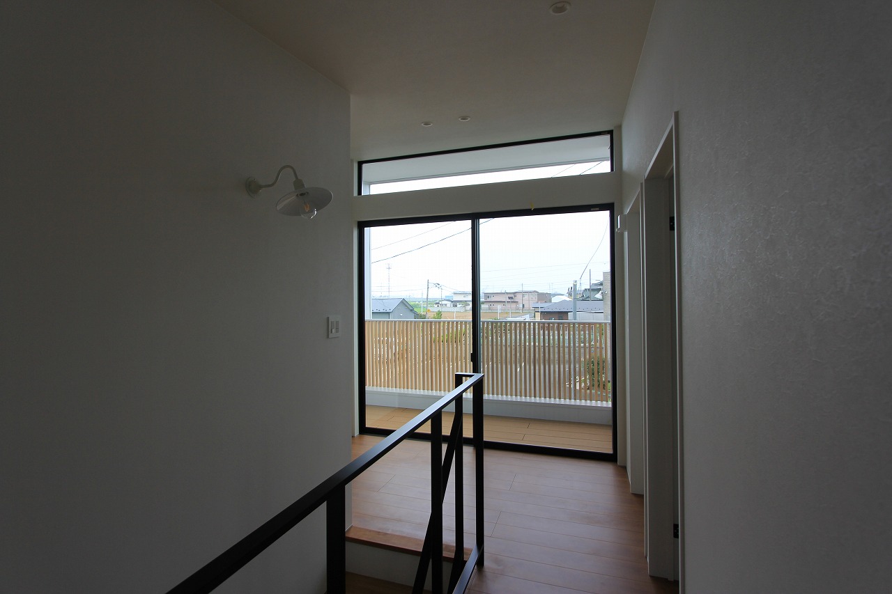 階段を上った先にバルコニーを設けることで明るさと空間の広がりを感じることができるプランです。