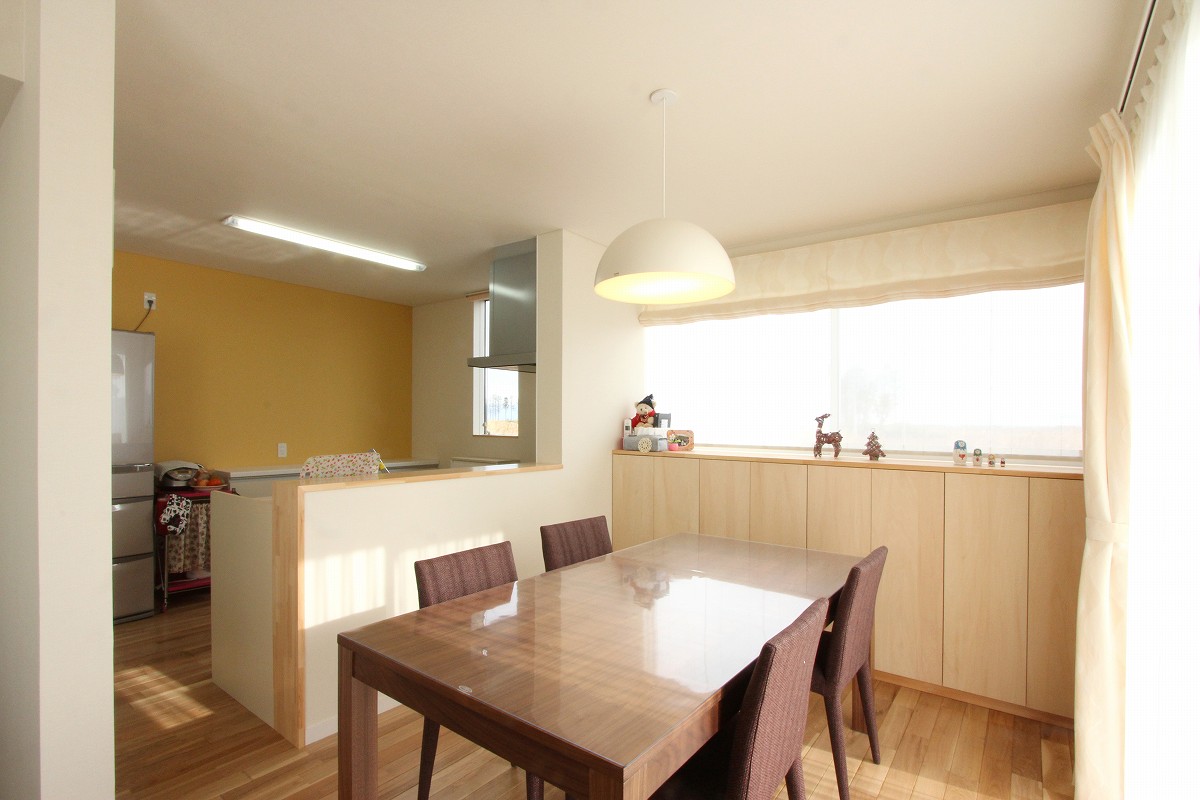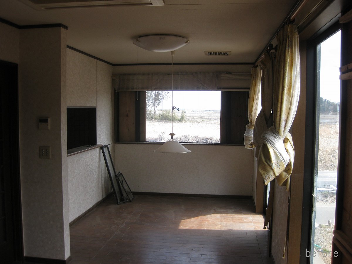 東日本大震災で津波の被害を受けた住宅の改装を行なった。1階が海水に浸かってしまった為、1階を中心に改修を行なった。震災で痛んだ箇所を補強しながらも断熱など住宅として必要な性能を強化した。プランは既存ベースとし、仕切られていたLDKを不要な仕切りをなくし、ワンルームとしたことで開放的な空間を設計。さらに時代変化に伴い、既存和室を半分のスペースとし、残り半分を収納スペースとして活用的な空間を作った。