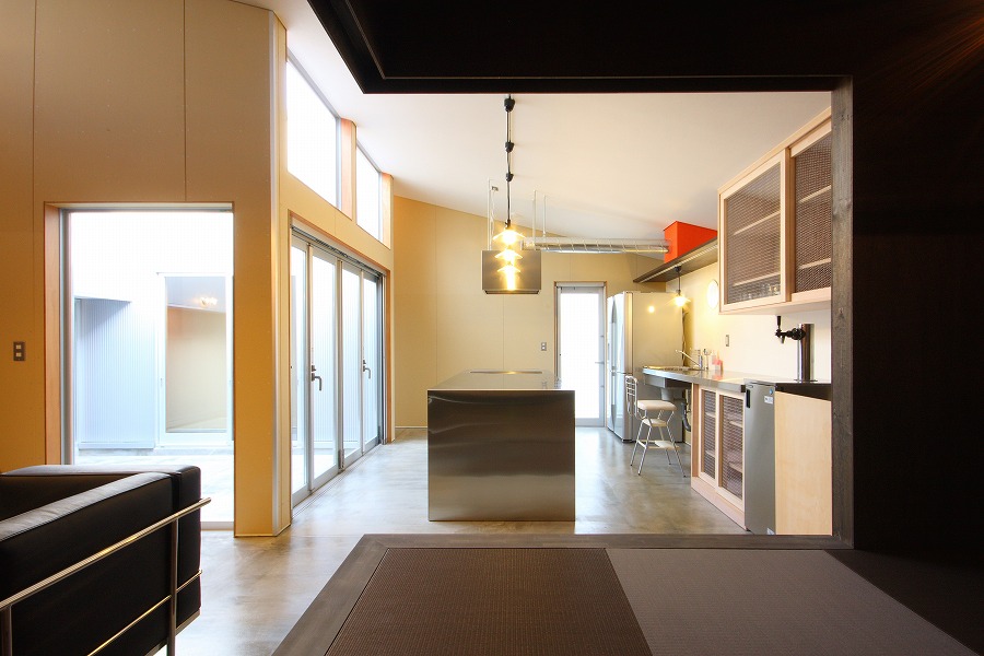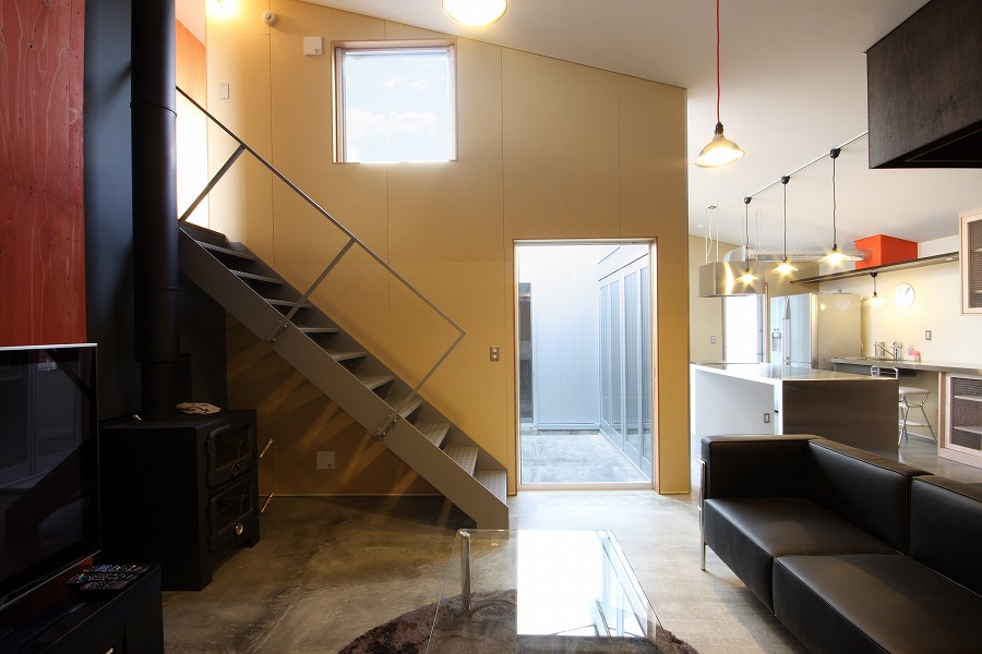 2つ目は空間の繋がりを緩くすることにより”ラフな住空間”を演出しています。中庭を中心として、各居室がスキップフロアでらせん状に間仕切りなく繋がり、コンパクトなヴォリュームながらも広々とした大らかな住空間を形成しています。