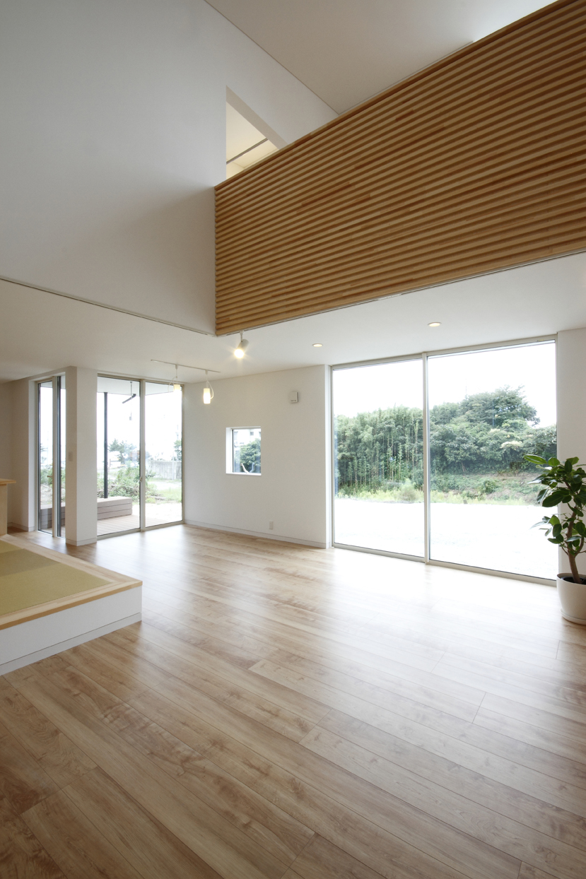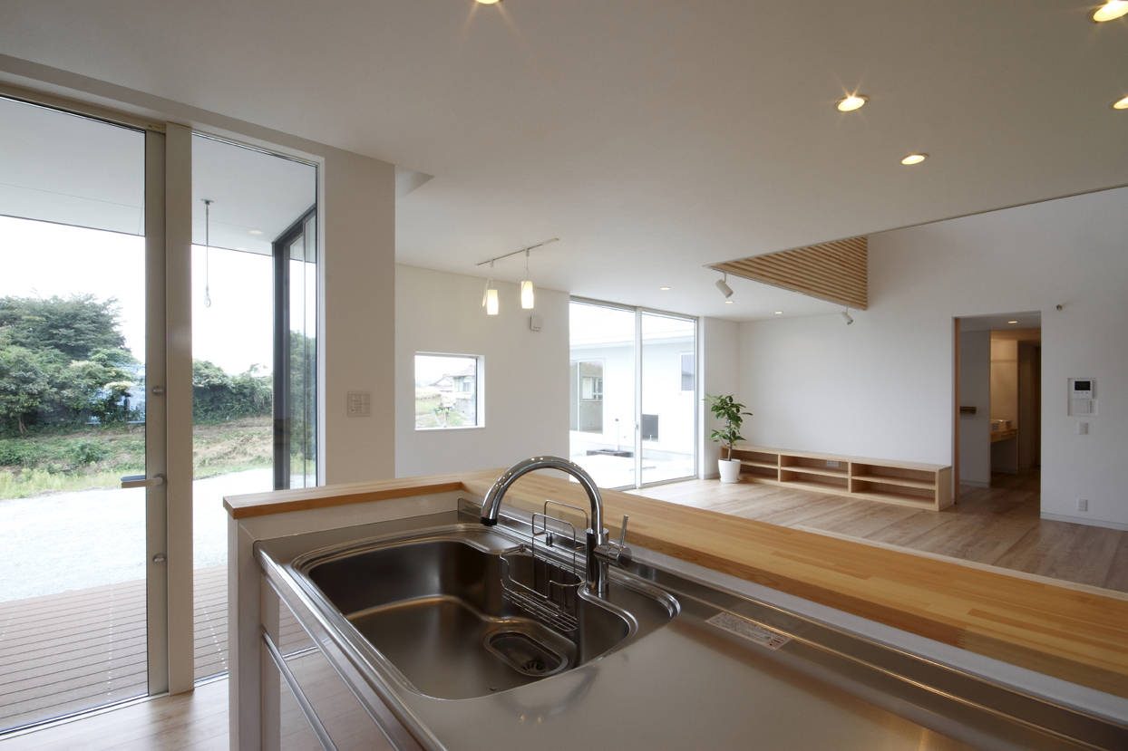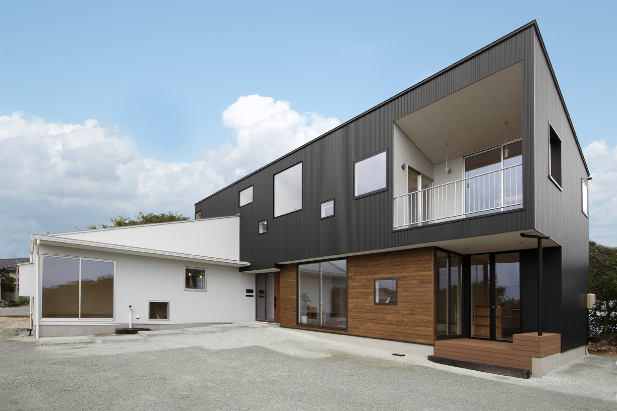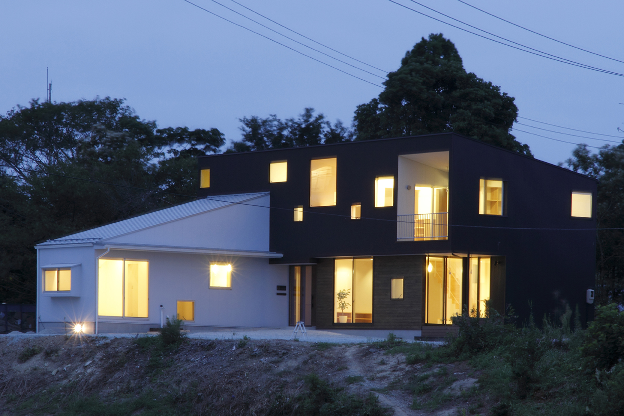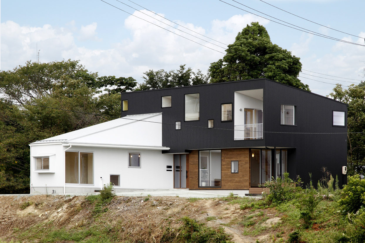 既存住宅を建替え2世帯住宅にする計画として始まった。計画地は福島県相馬市の郊外にある松川浦を望むことが出来る小高い丘の上で、震災による津波被害も受けなかった地域である。
