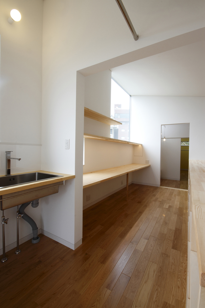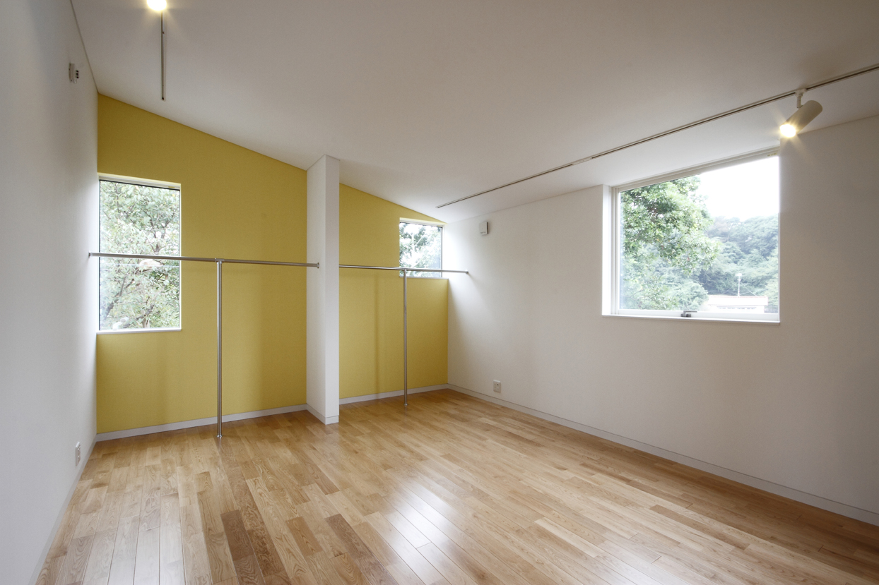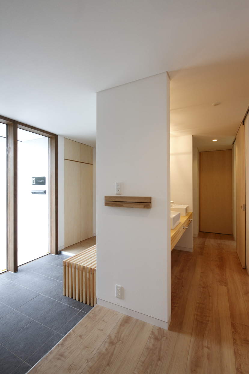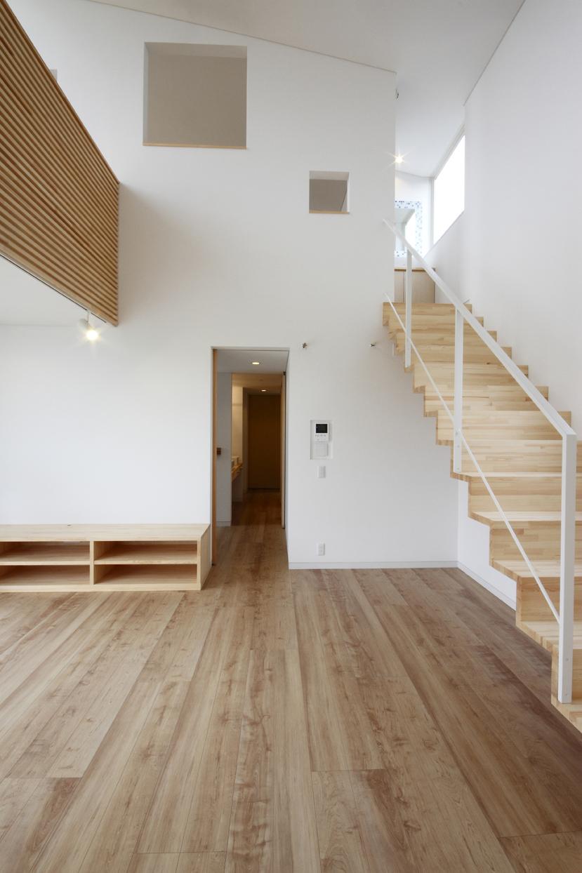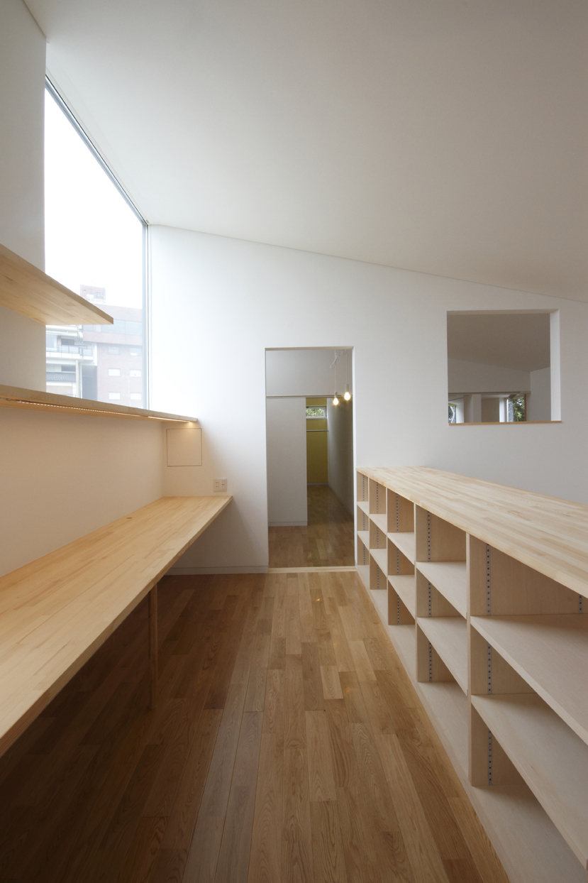 建物は親世帯ゾーン、子世帯ゾーン、共有ゾーンを設けた2世帯住居である。1階は共有ゾーンのLDKと水廻り。親世帯ゾーンの寝室とセカンドリビング1となっている。水廻りと親世帯ゾーンは近い位置に設けている。2階は子世帯ゾーンの寝室と子ども部屋、セカンドリビング2、スタディコーナーを設けている。また子世帯が使用するミニキッチンを寝室近くの設けている。外部も親世帯ゾーン、子世帯ゾーン、共有ゾーンの違いが分かるデザインとした。親世帯ゾーンが白、子世帯ゾーンが黒、共有ゾーンが茶となっている。