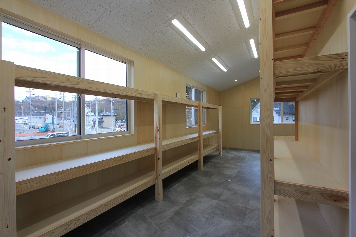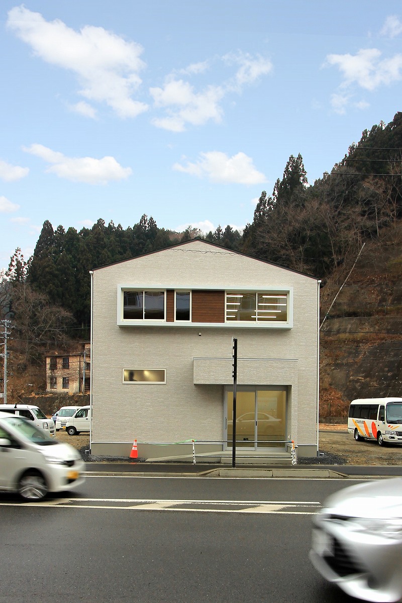 東日本大震災で被災された事務所の再建プロジェクトである。 当初併用住宅として進めていたが様々な要件が重なり事務所のみとなった。使い勝手を幾度となくヒアリングしてお客様とともに設計をしていった。重量のある書籍を扱うため1階に倉庫を配置して2階に事務所スペースも設けた。将来的には1階を店舗としても使用可能に設計した。 地域の方が離れていく中で以前からあった場所で再建することで地域の希望となっている。