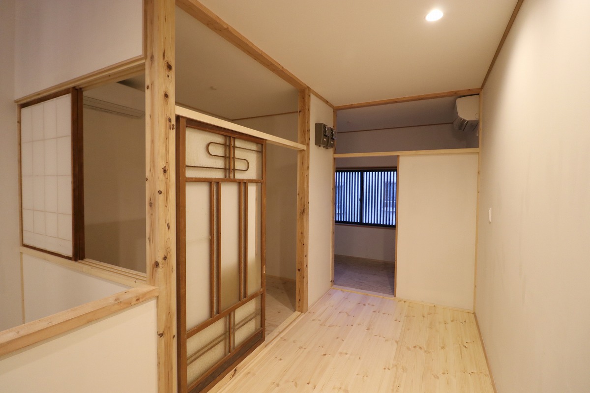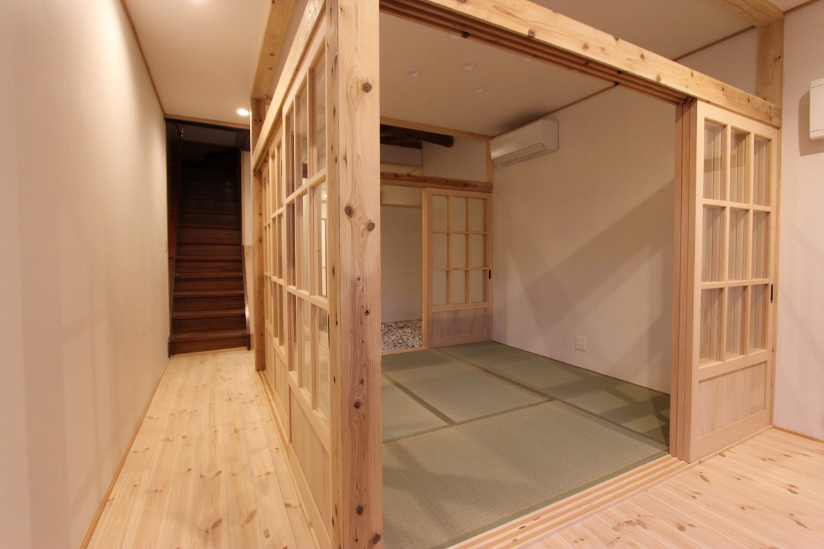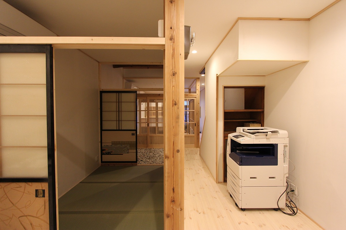 何十年も空き家だった、明治時代に建てられた元だんご店と、昭和初期に建てられた元せんべい店の2棟をシェアオフィスにリノベーションした案件です。