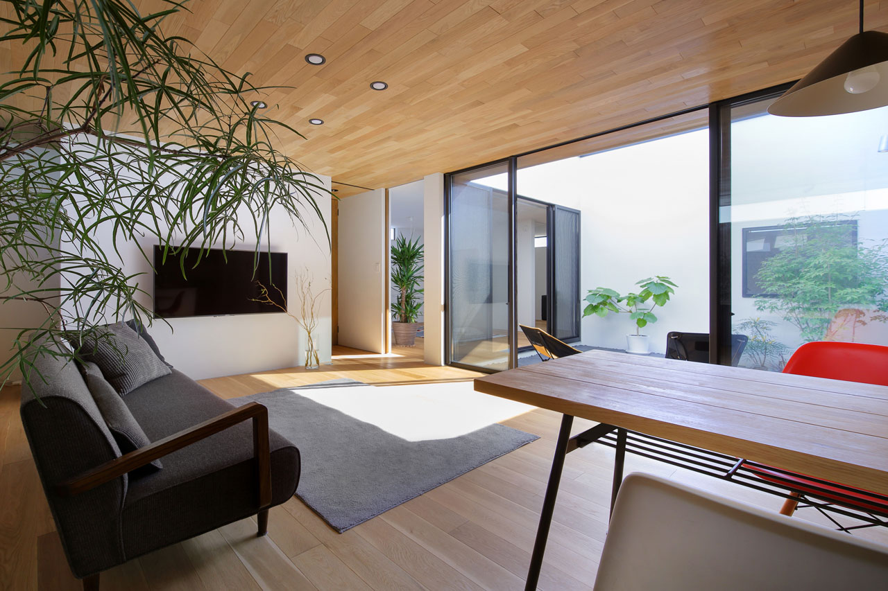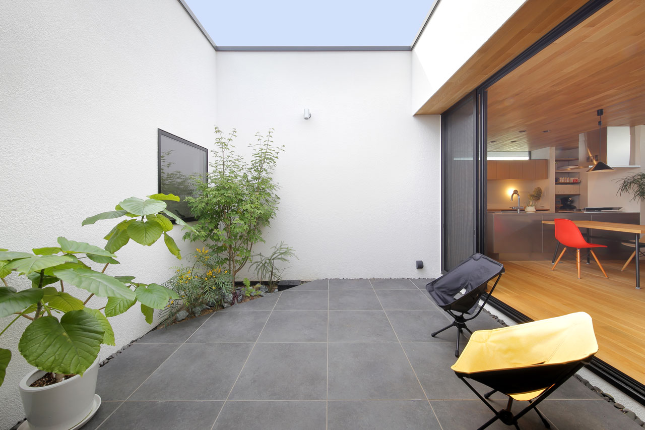 周辺環境からの視線を遮りつつ、気兼ねなく過ごせる外部空間を設けた中庭型の住宅です。