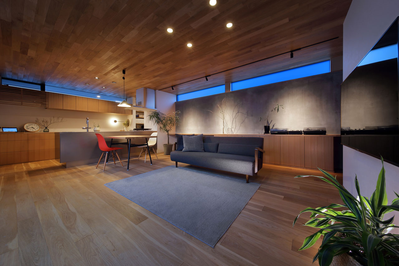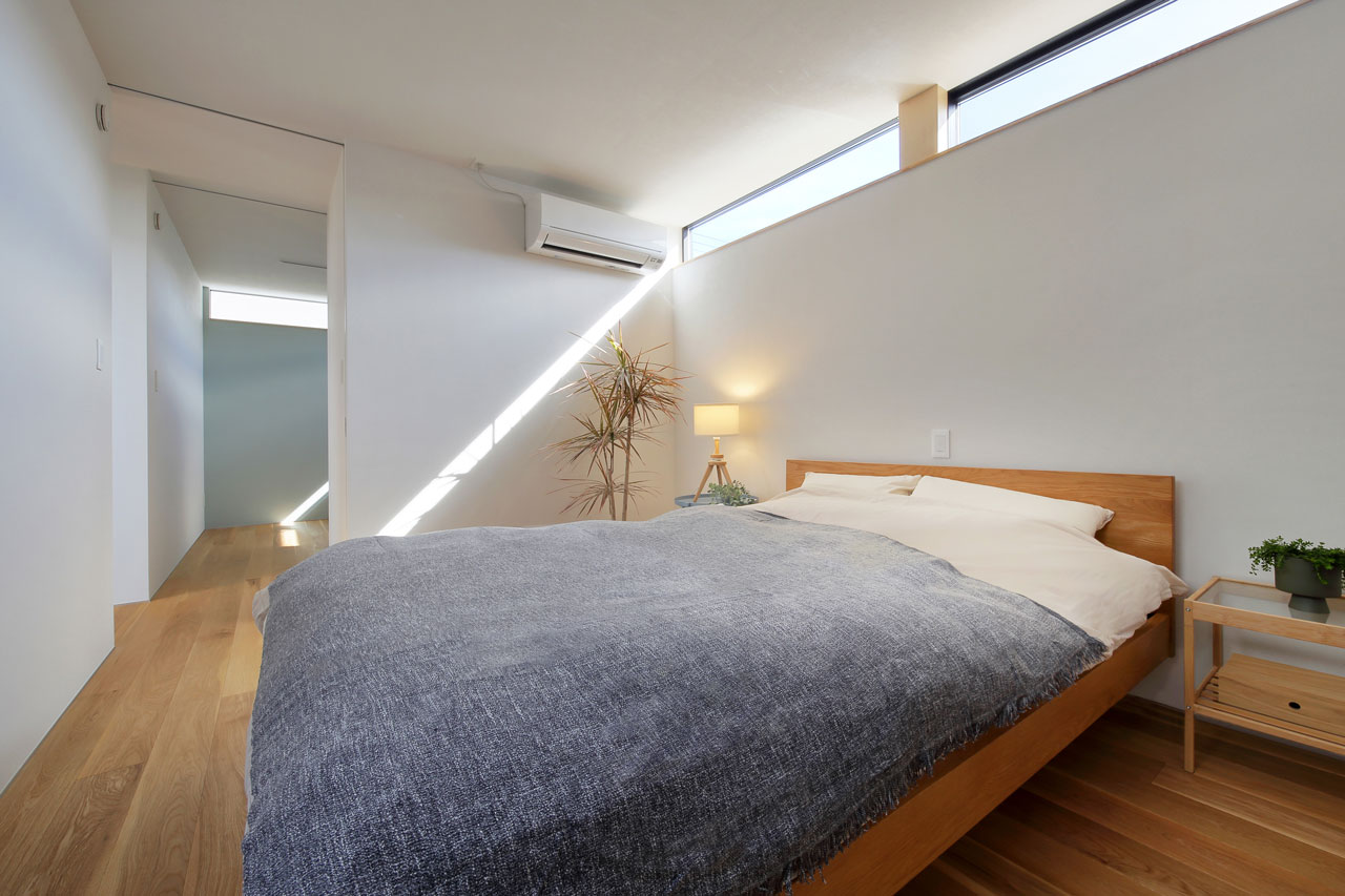 外周部の各居室に設けられたハイサイドライトは外観上のアクセントとなり、夜になると室内の明かりが開口部から外へ広がり昼とは違った豊かな表情を見ることが出来ます。