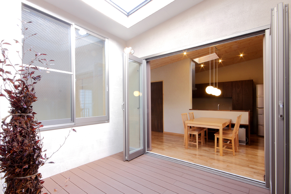 敷地外環境→敷地内環境→住戸内環境というヒエラルキーに建築的な連続・不連続をつけることでコンパクトな室内空間の領域を広げる工夫ができた。