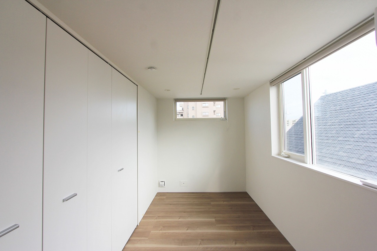 都市型の木造三階建て住宅の計画。計画地は仙台駅から徒歩圏内の20坪弱の狭小地である。平面計画としては1階に駐車場と水廻り、2階にLDK、3階に家族のための個室、そして屋上庭園の4層のプランである。1階と3階は天井高さを2.1mに抑え、2階に高天井を採用することで、高天井を生かした小上がりやロフト等、中間層のある都市型5層の家が生まれた。