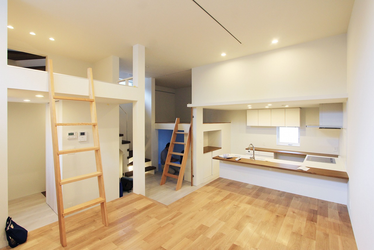 平面的には小さな住宅だが層を重ねることによってたくさんの居場所が生まれている。