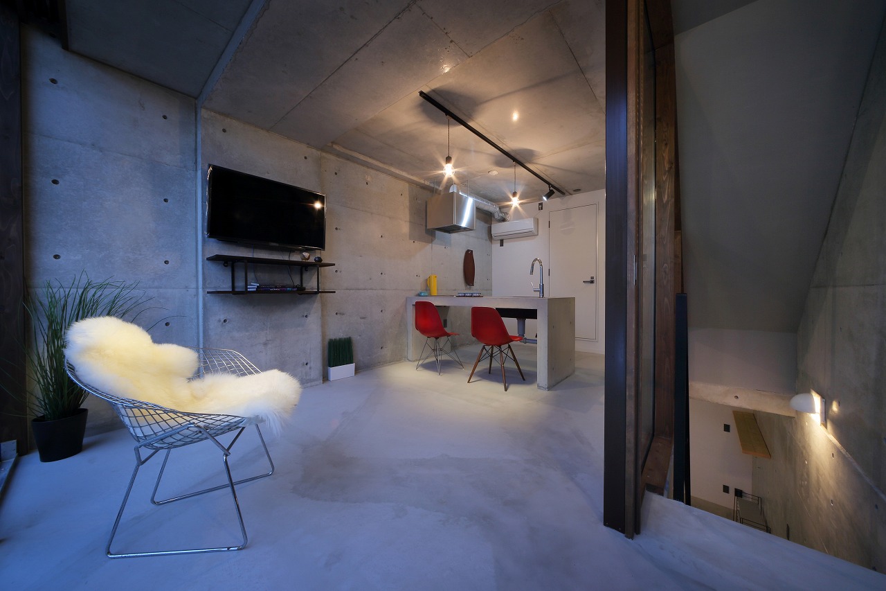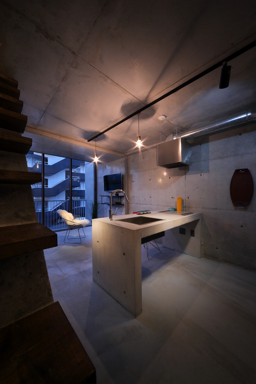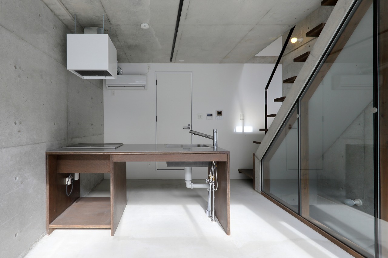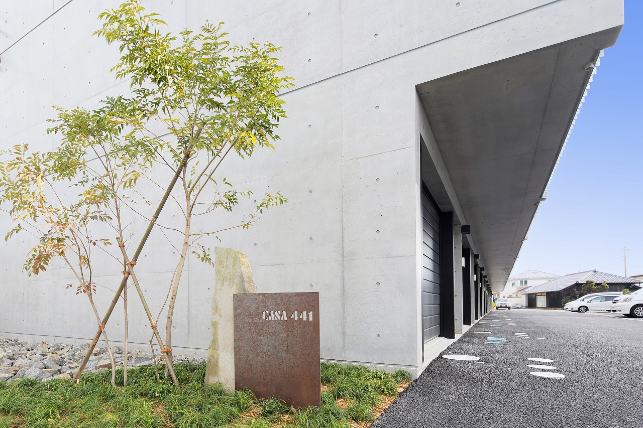 CASA441は、過去に建築した「TAPT CITY Ⅱ」をべースに計画された建物である。構造をよりシンプルなものとすることで建築コストを削減し、間取りも1LDKから2LDKとすることでファミリー層の入居も可能なものとした。さらに、床は土間仕上げとすることで建築コストの削減に加え、ペット可能な賃貸に対応しやすいものとした。意匠的にもRCに囲まれ、洞窟のような面白い空間が生まれた。そのような、建築コストの削減に加え、オーナー自ら各業者と直接契約するCM方式としたため、電動オーバースライダーや一般住宅用ユニットバス、タンクレストイレ、製作キッチンなど、設備の機能や意匠性の高いものを利用することが可能となり、より価値の高いものとすることが出来た。