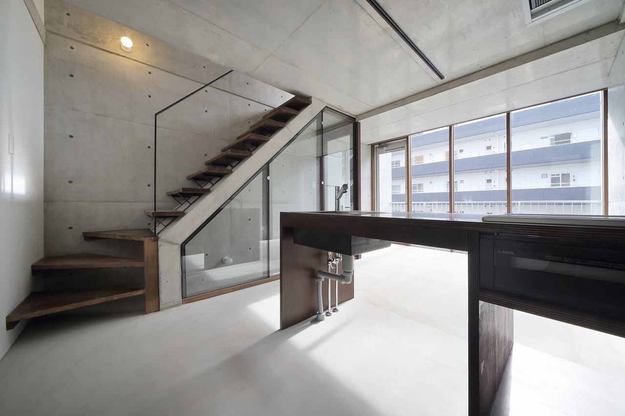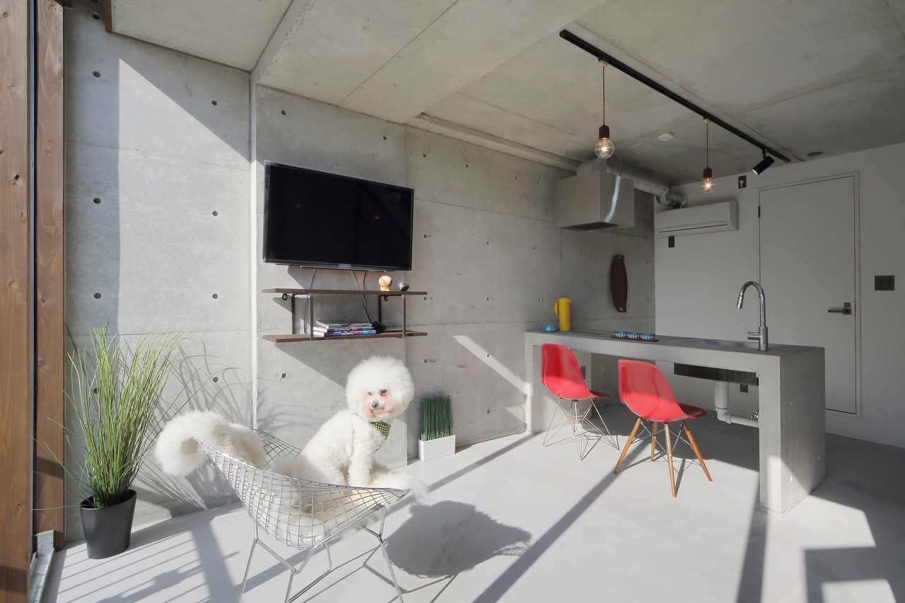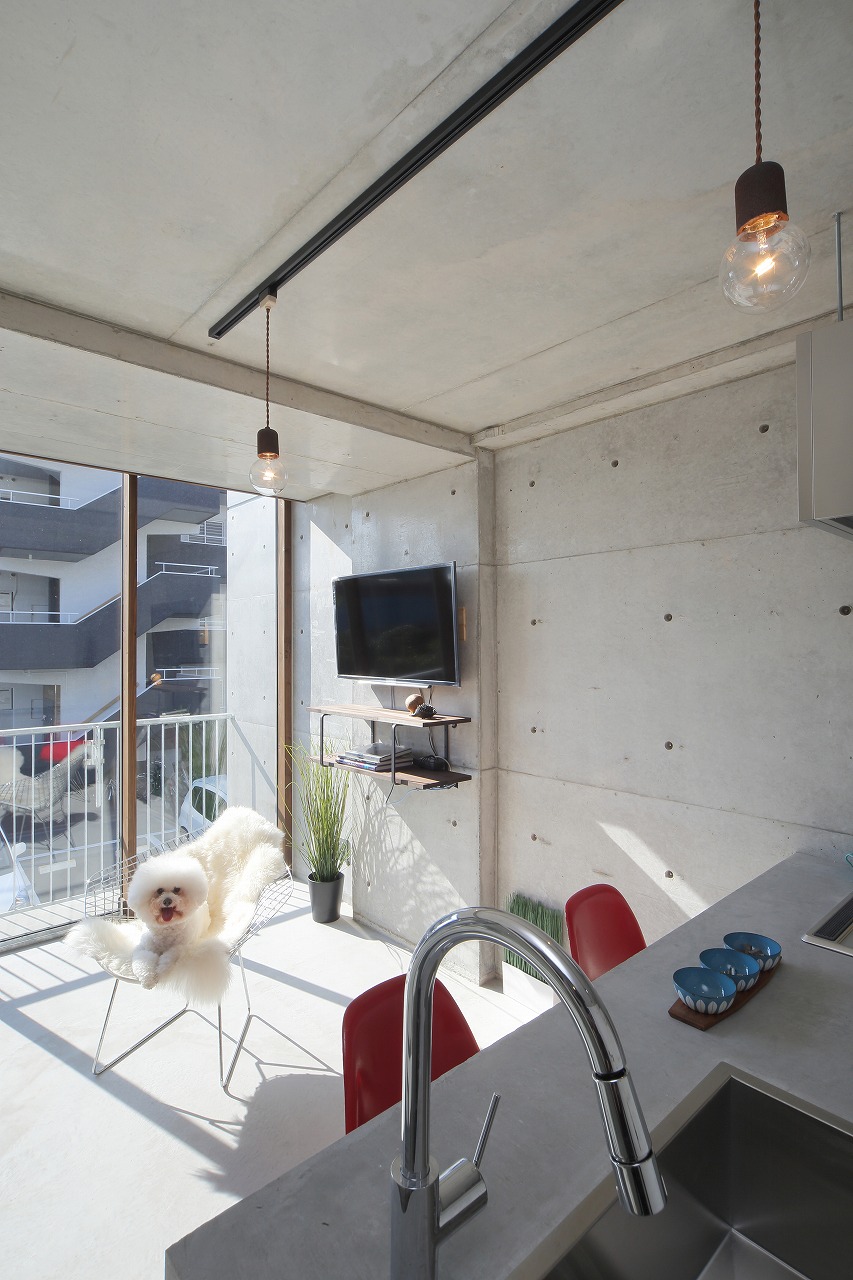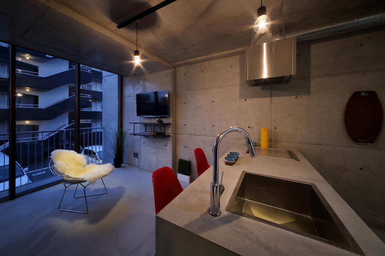CASA441は、過去に建築した「TAPT CITY Ⅱ」をべースに計画された建物である。構造をよりシンプルなものとすることで建築コストを削減し、間取りも1LDKから2LDKとすることでファミリー層の入居も可能なものとした。さらに、床は土間仕上げとすることで建築コストの削減に加え、ペット可能な賃貸に対応しやすいものとした。意匠的にもRCに囲まれ、洞窟のような面白い空間が生まれた。そのような、建築コストの削減に加え、オーナー自ら各業者と直接契約するCM方式としたため、電動オーバースライダーや一般住宅用ユニットバス、タンクレストイレ、製作キッチンなど、設備の機能や意匠性の高いものを利用することが可能となり、より価値の高いものとすることが出来た。