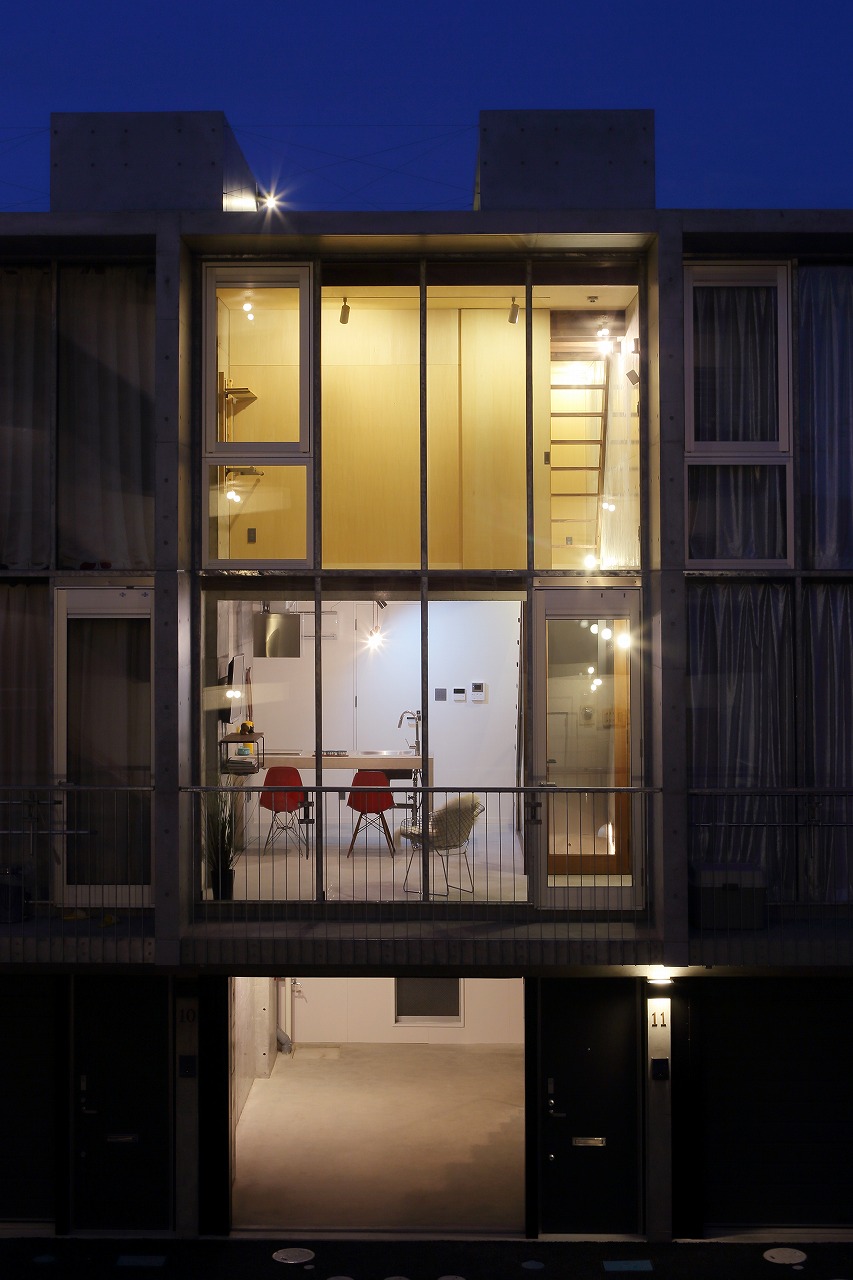 プランは1階が玄関兼ガレージとなっており、2階がLDK+水回り、3階はベッドルーム2室とWCLとなっている。また、8~11号室の4室のみロフトを設け、ロフトからルーフテラスに出られるようになっている。