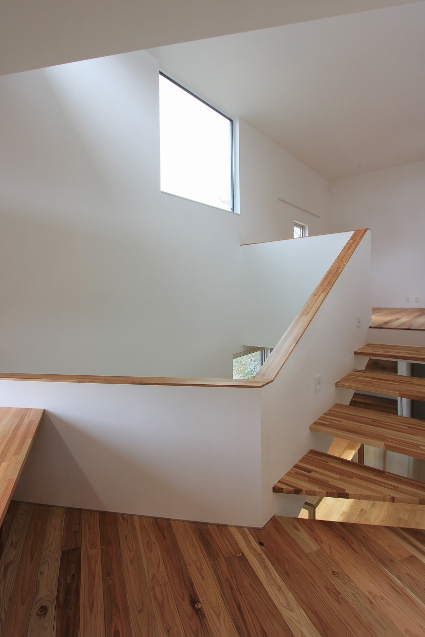 吹き抜けはリビングから子供部屋までスキップフロアによってつながった部屋と部屋を視線的にもつなげる効果があります。キッチンにいる奥さんからはリビングでくつろぐ旦那さん、ライブラリースペースで読書を楽しむお子さんの様子を窺うことができます。