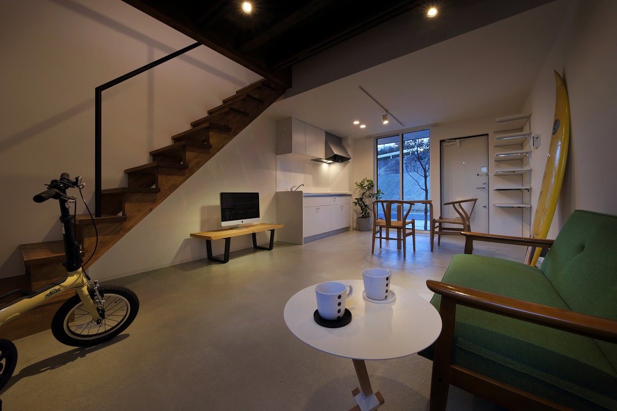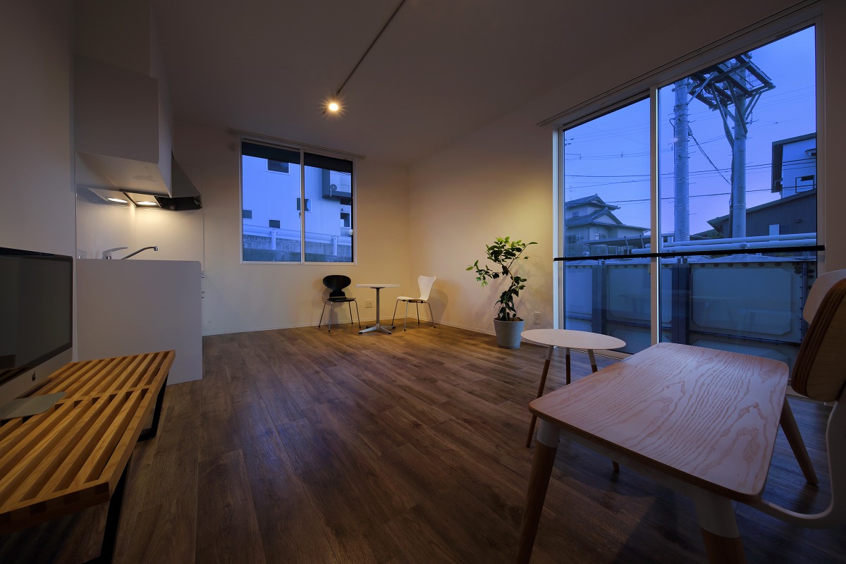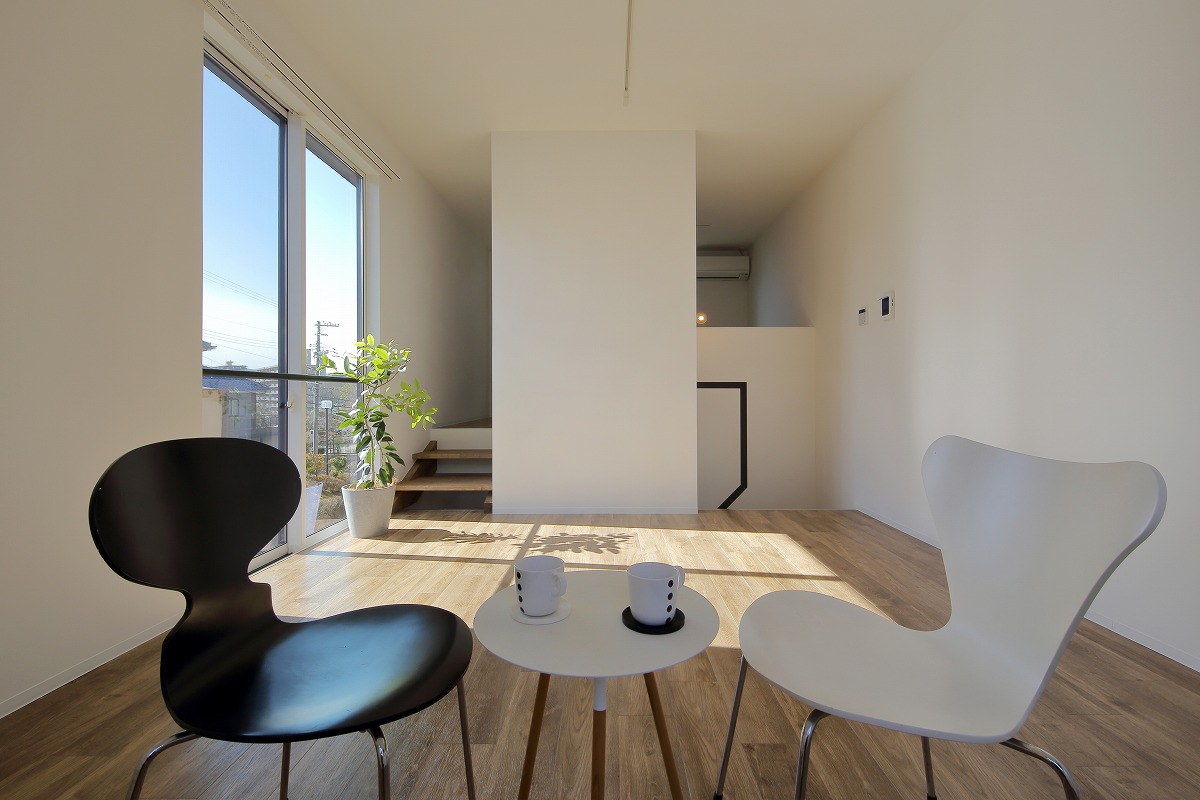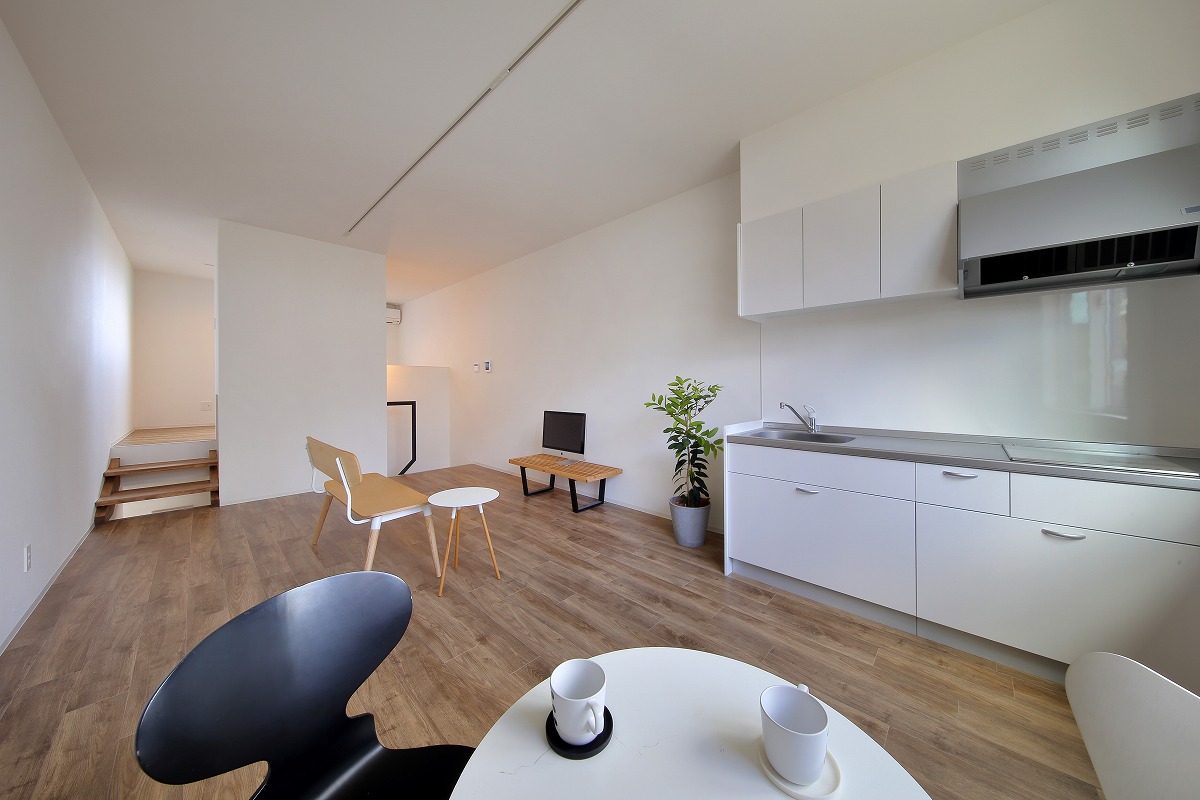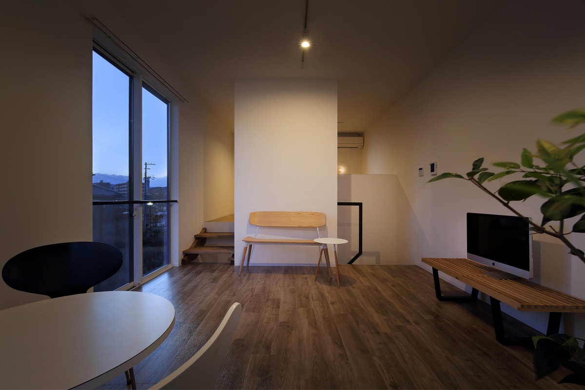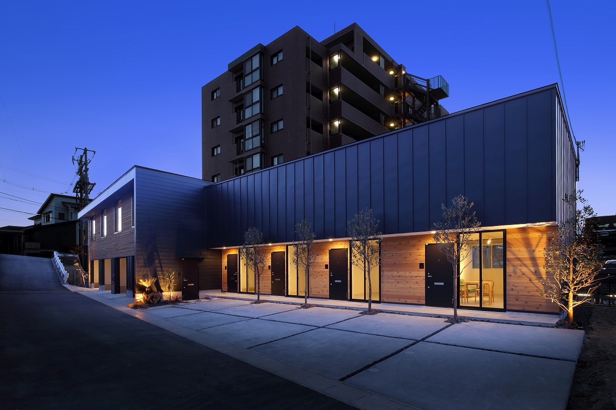 計画立地は、仙台中心部と泉の中間に位置する高台にある。敷地条件としては旗竿型であり、隣地との共有敷地を通りアクセスする。立地としては、仙台中心部や泉方面へのアクセスが良好なため、1LDKを主体とし単身者からカップル層の壮年層を想定した間取りとした。また、敷地が不整形地なため駐車台数を住戸分確保するため、ガレージタイプの住戸4戸と外部に駐車場を設けたメゾネットタイプの2タイプの間取りとした。さらに、台原森林公園へのアクセスが良くペットと暮らす環境としても良好なためペット可の住居となっている。