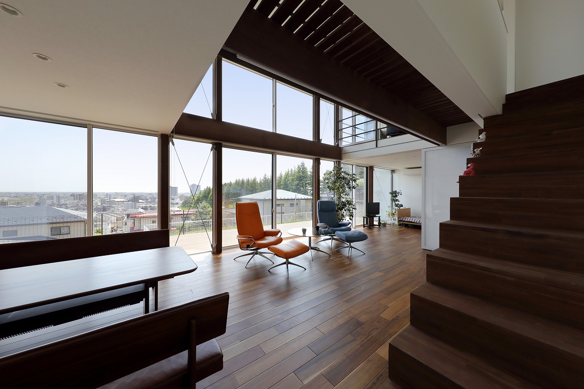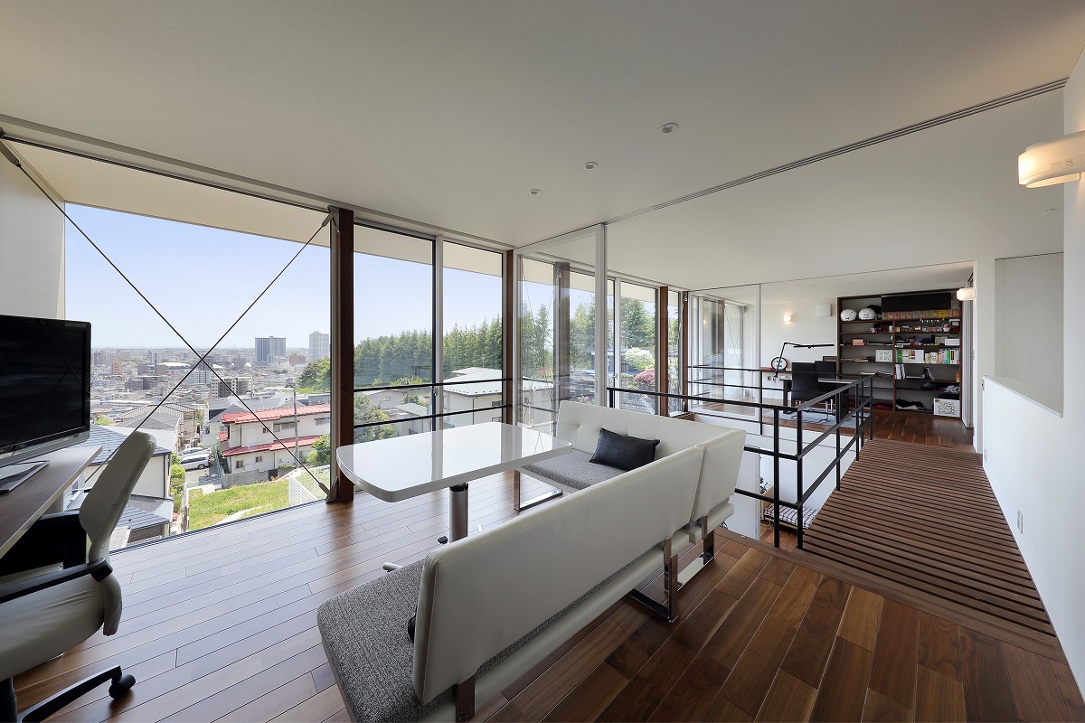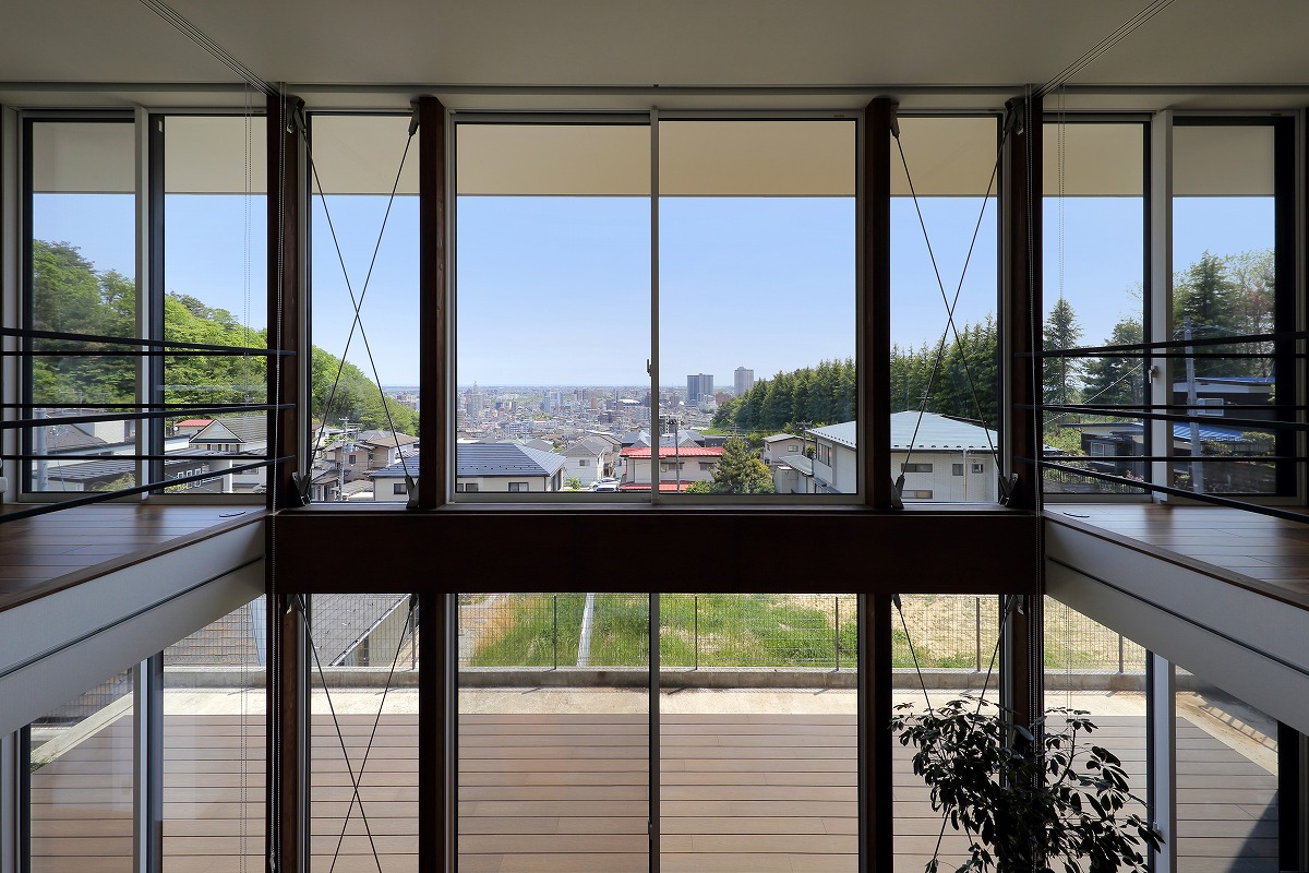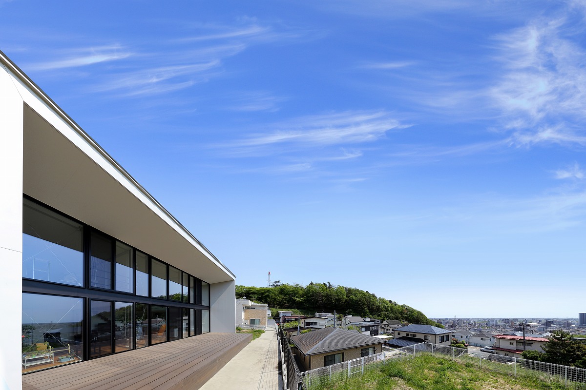 計画地は仙台市近郊の高台に位置しています。太平洋まで見渡せる眺望を活かした設計を心掛けました。