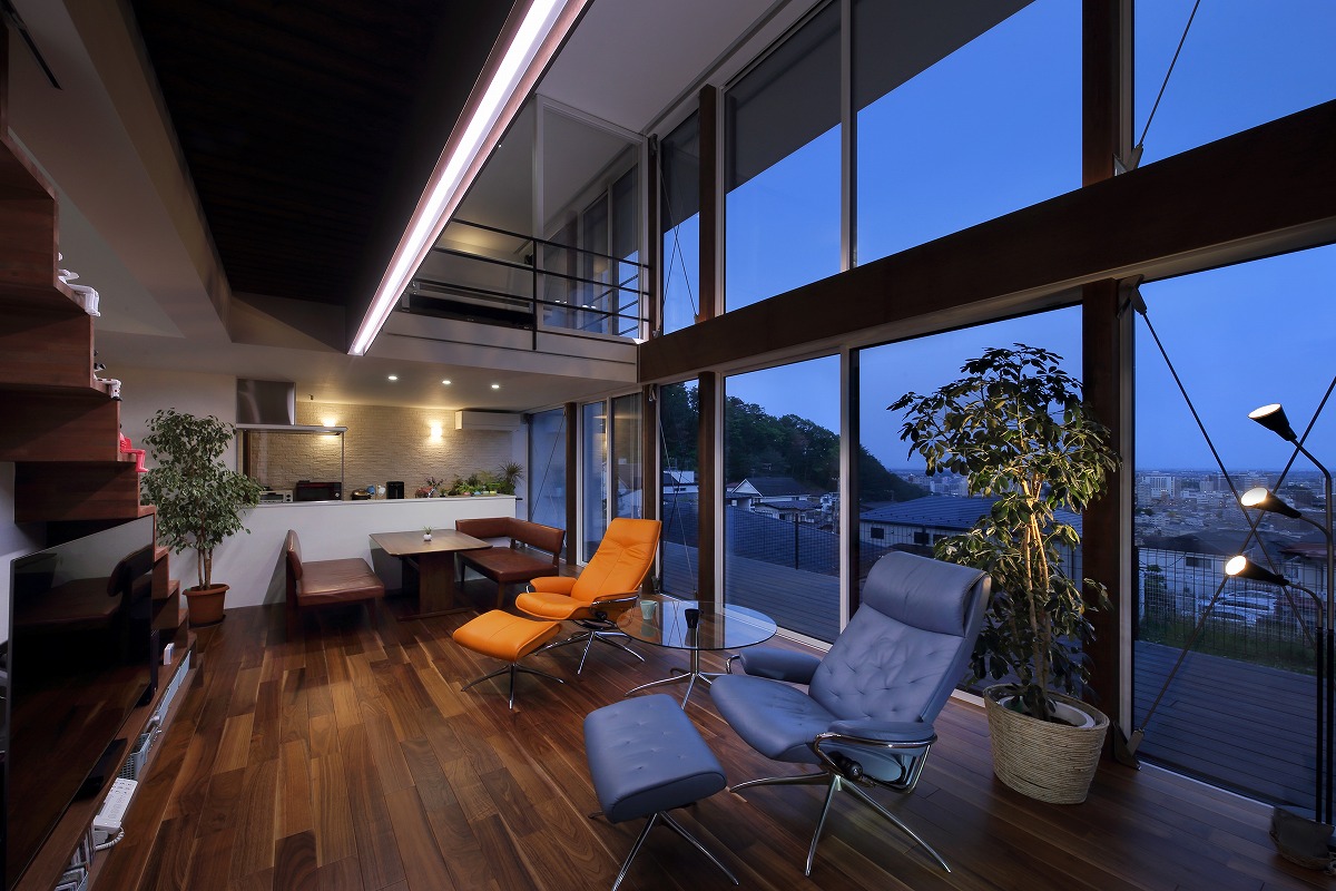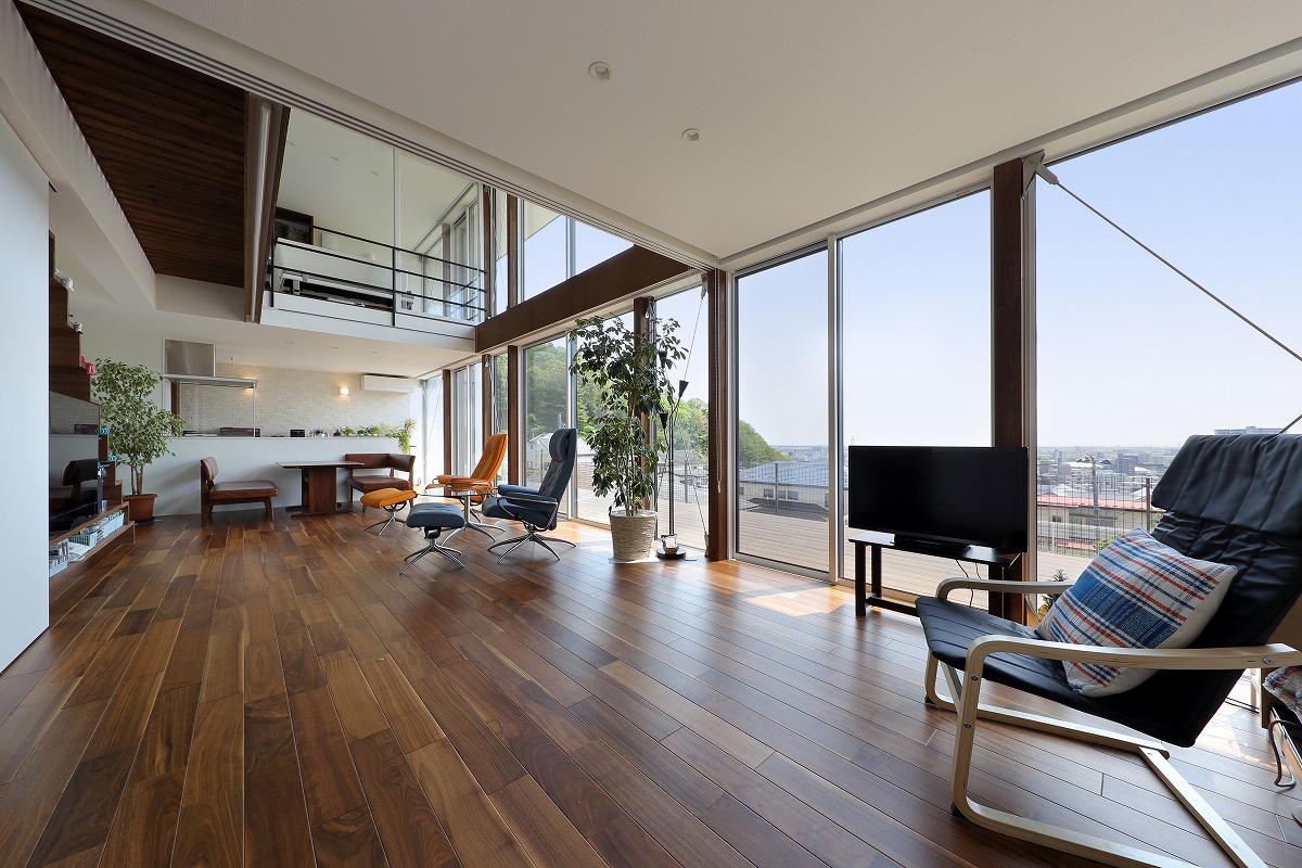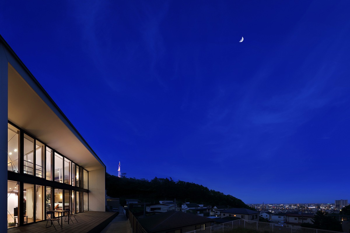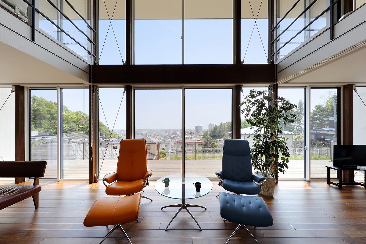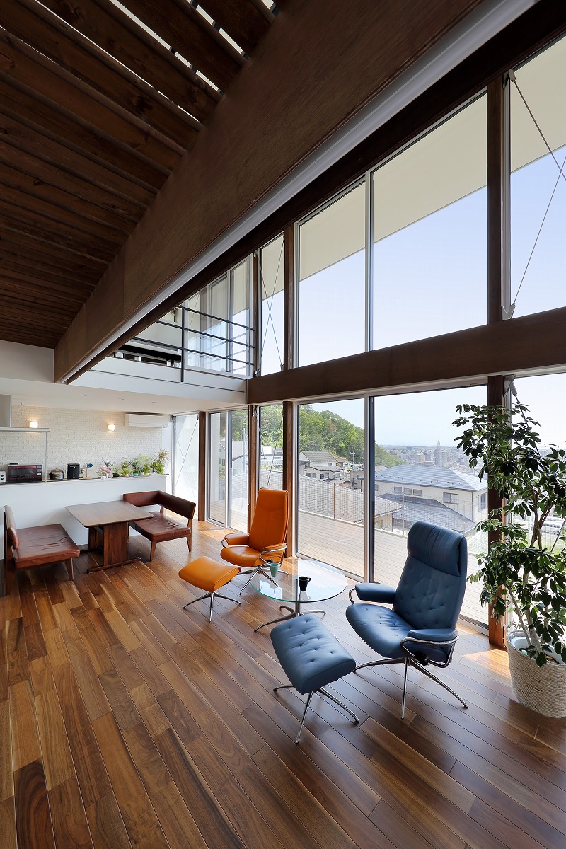 計画地は仙台市近郊の高台に位置しています。太平洋まで見渡せる眺望を活かした設計を心掛けました。