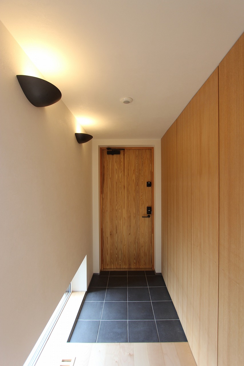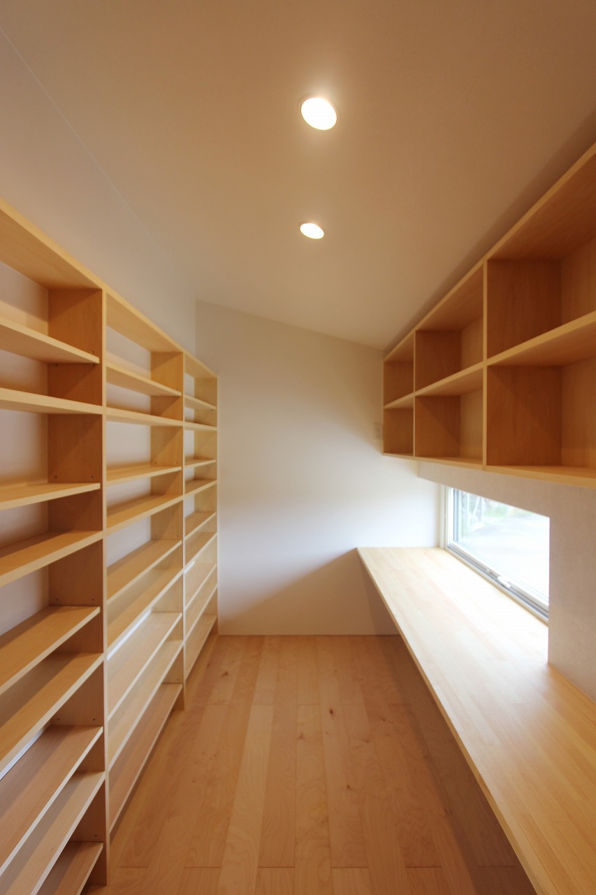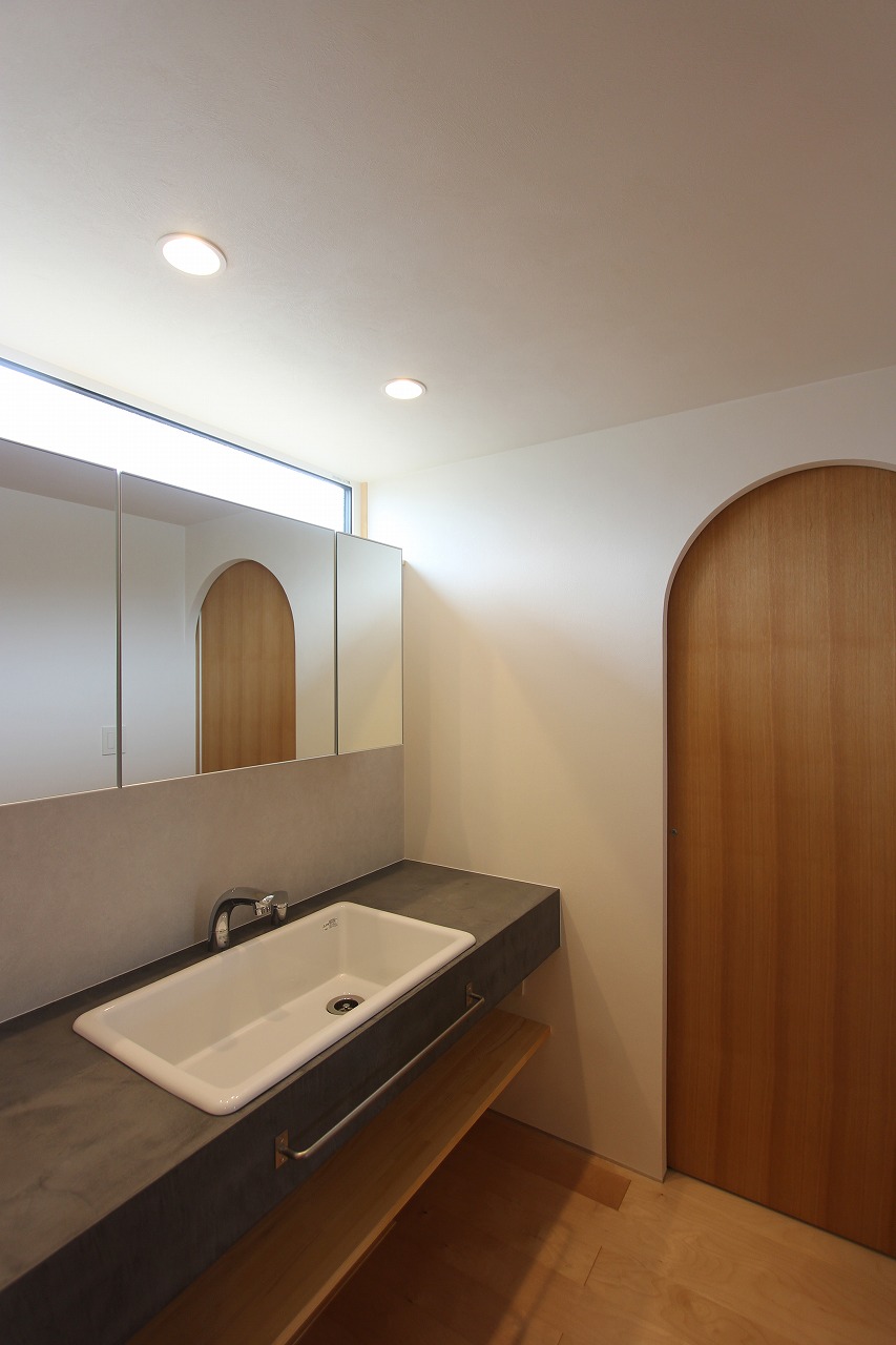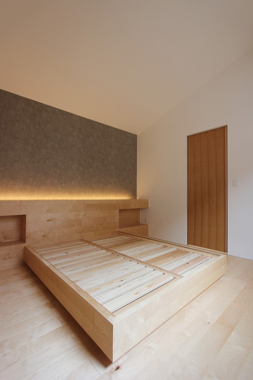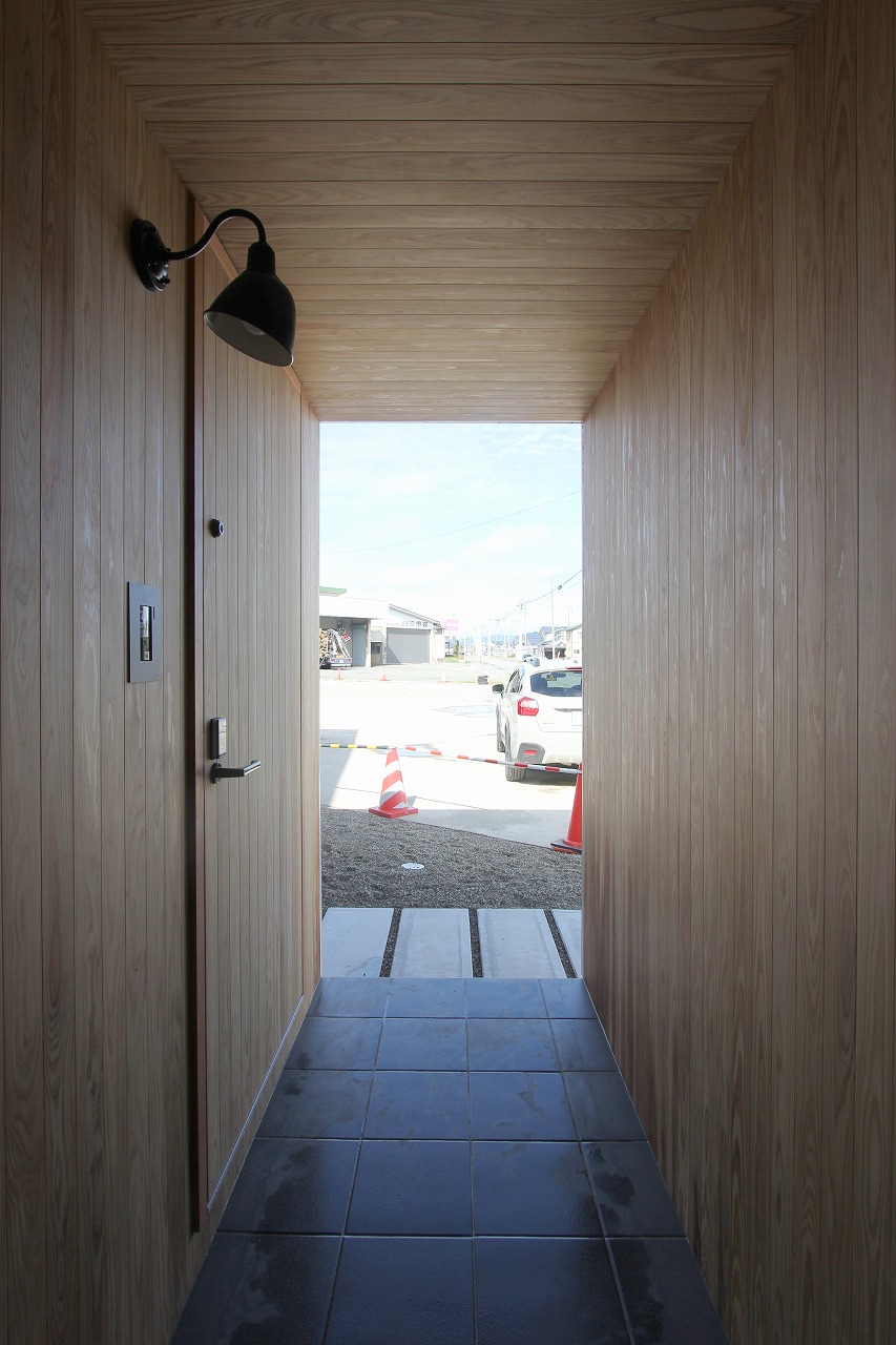 そこで道路に対してご要望であるインナーガレージを設計することとし、雁行しながらプラン配置を検討しました。また南側にご実家があり建物高さもあることから採光の取り方やご実家との関係性を模索しました。