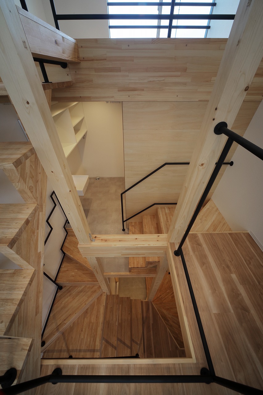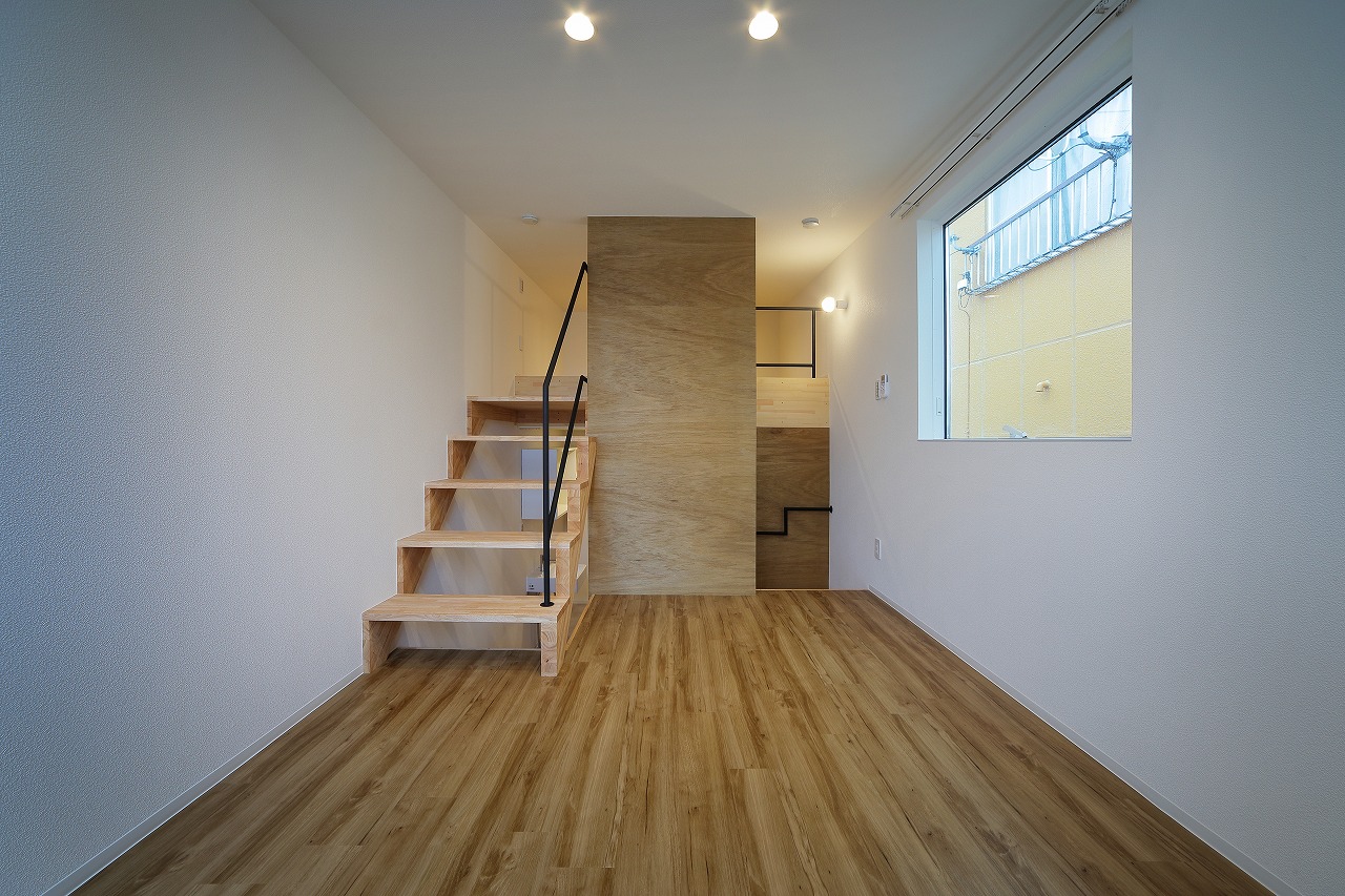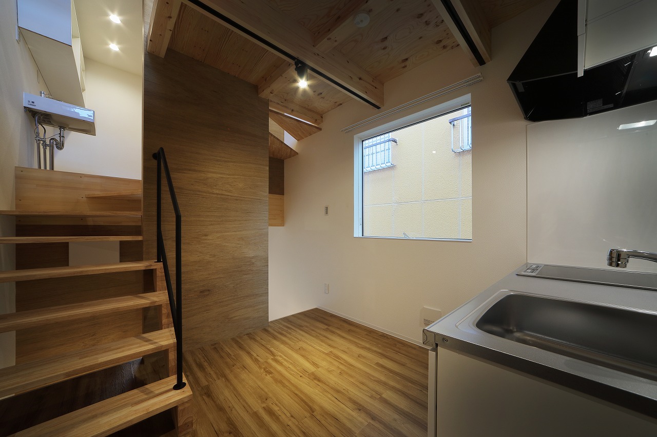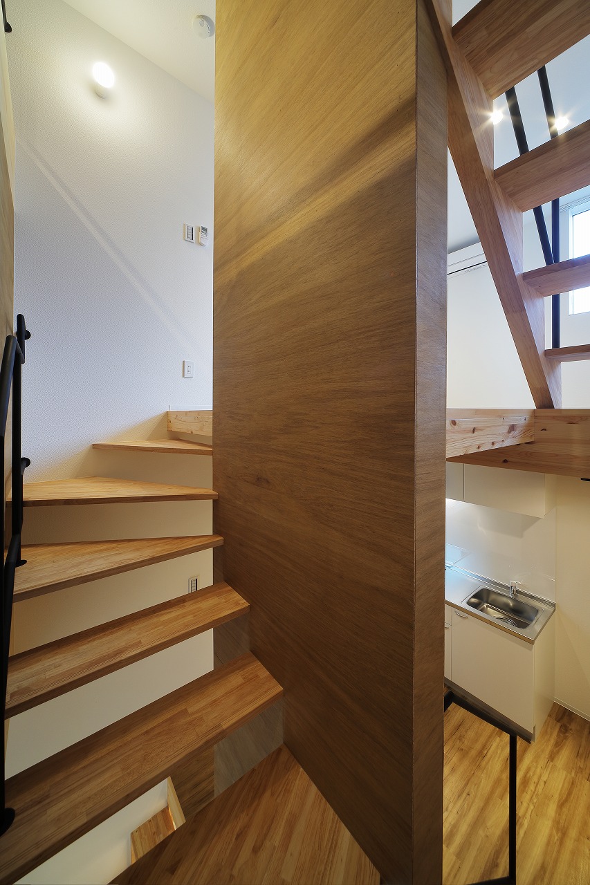 計画地は、古い建物が多く建つ市街地である。47坪の駐車場として使われていた敷地に6戸の集合住宅を作った。交通量の多い道路沿いに位置した本物件は、入居者のプライバシーを考慮するため、玄関までのアクセスを単一なものとせず、各住戸へ、多方向からアクセスするようになっている。そのため、どの入り口(玄関)からどの部分に入居しているかは、外観からはわかり分かりにくい。内部は、メゾネットとなっており、床下やロフトを有し縦に広い空間が広がる。6住戸すべて、間取りやデザインが異なり、それぞれ好みに合わせ選ぶ楽しさもある。また、住戸内の仕切りを最大限減らすことで、床面積以上の広さを感じる作りとした。