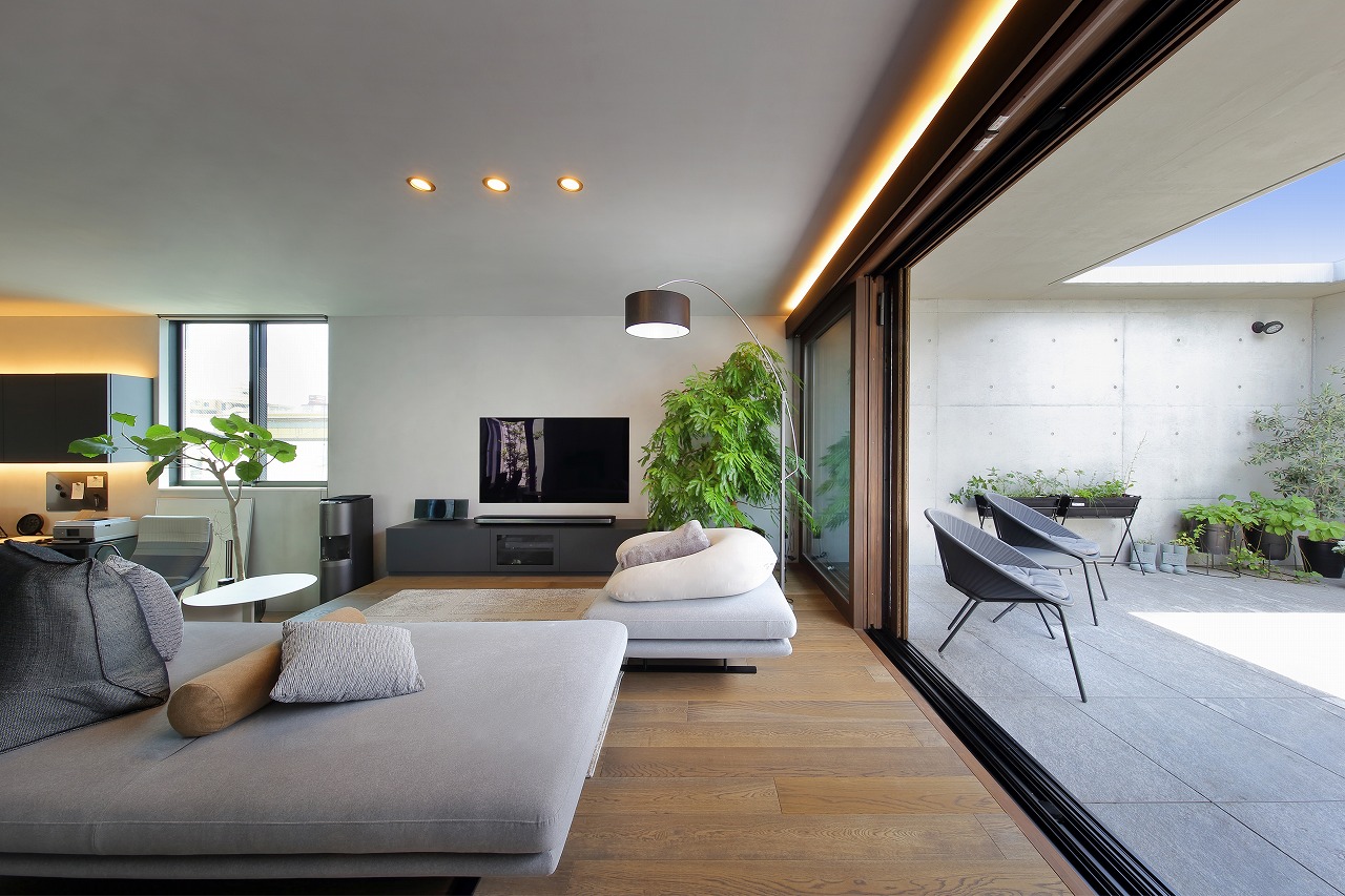 計画は、賃貸併用住宅であり、施主の住居部分の環境性を考えながらも賃貸住居を設け、収益性を得ることに対するバランスをヒアリングしながら行った。そのため、企画設計を行う際に、敷地に対しいくつかの配置や階数などのボリュームを検討し、収益性の高い計画より自邸の環境性を優先した計画とすることとなった。また、交通量や人通りの多い道路沿いに建つため道路側からのプライバシーを考慮するデザインを提案した。賃貸部は単身者用のワンルームから間仕切る事も可能な広めなワンルーム型のとなっている。仙台中心部へのアクセスの良い立地であるため、関東などからの転勤者などをターゲットにフレキシブル性のある大型ワンルームとすることで高額所得層の入居を見込んでいる。結果、高額な住戸から入居が決まり、完成前に大型の部屋はすべて決まる結果となった。