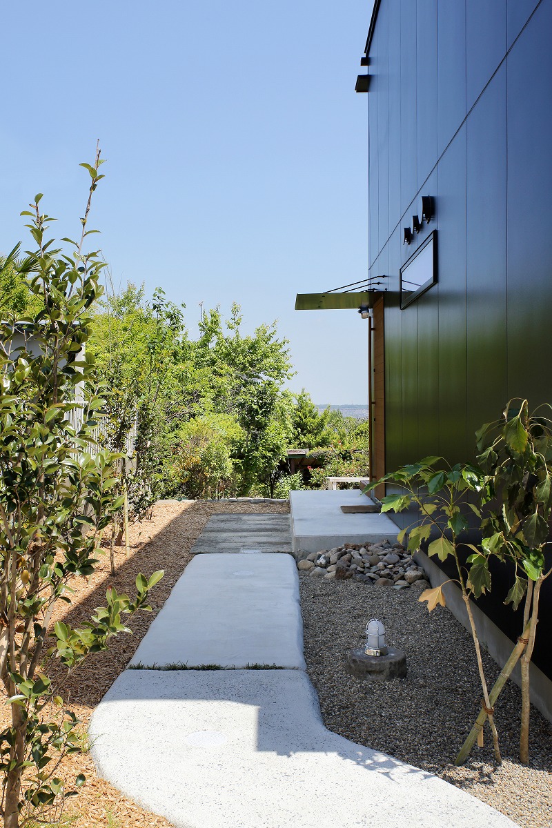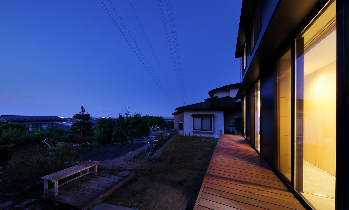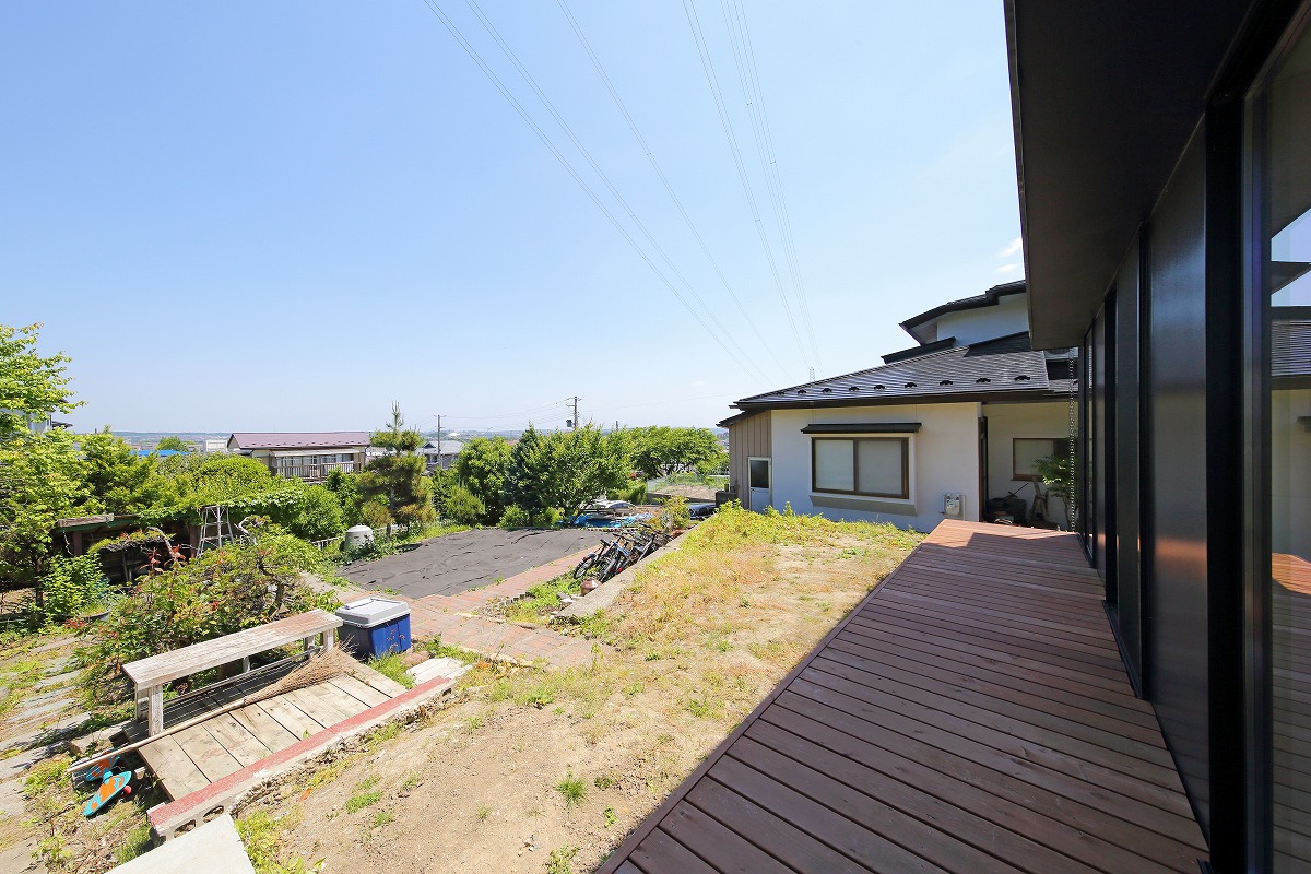 既存敷地南側には既存樹木が残っていて日当たりも良く環境がいいスペースでした。北側の土地も既存樹木が残っており、夏の日差しをカットするように建物を配置していたのでデッキテラスも北側に配置。お聞きしていた予算から建物をあまり複雑にせず、層二階にすることでコストを抑える工夫をしています。