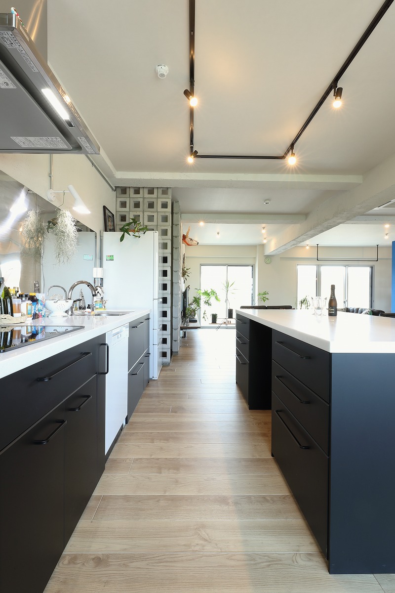 お施主様と打ち合わせを進める中で共通のイメージとして掲げたコンセプトは、RC特有の大空間を活かし用途をあまり決めない使い方や躯体をそのまま仕上に使うといった「ラフ&ワイルド」でした。