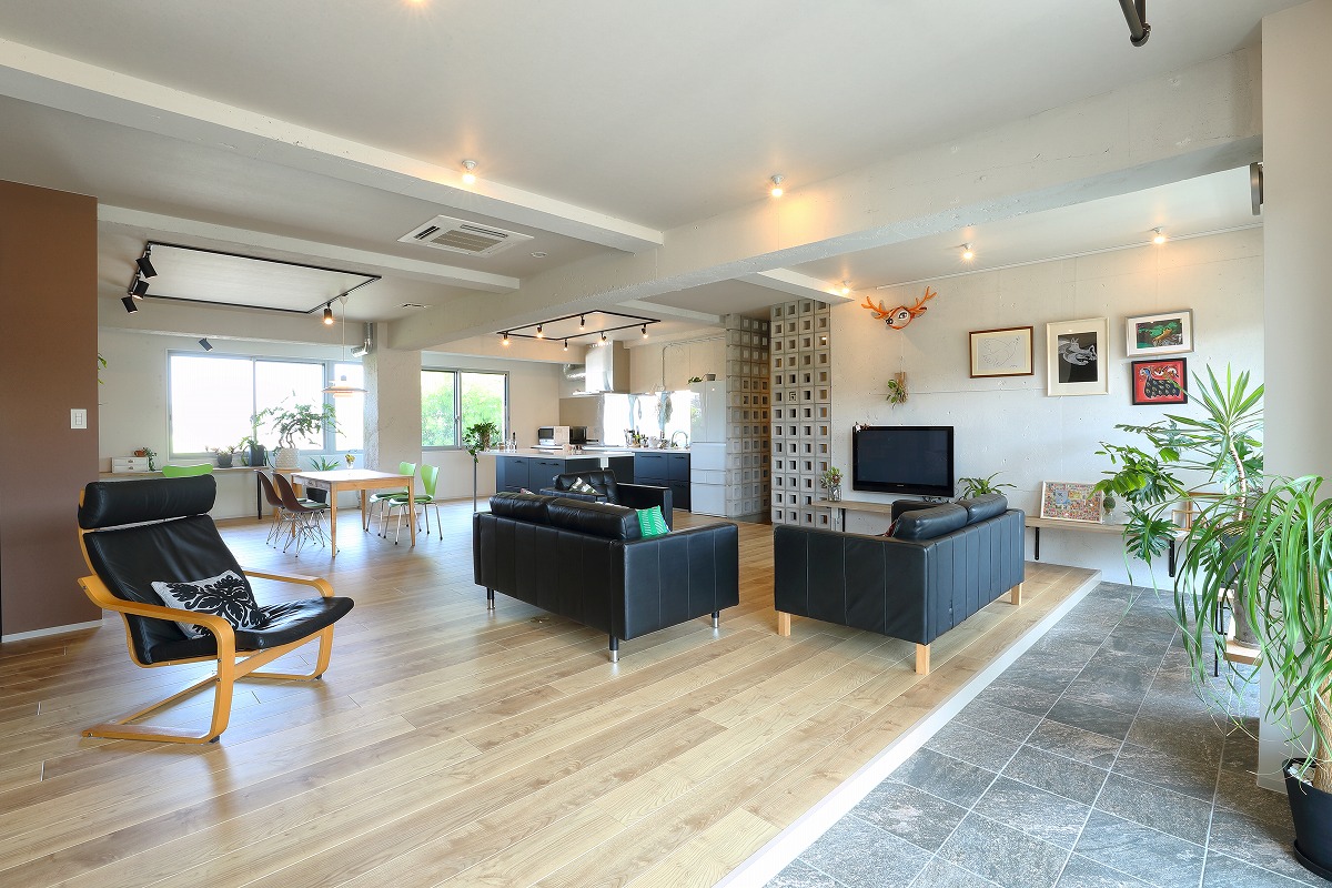 仙台市地下鉄沿線の築38年RC4階建てマンションのワンフロア200㎡ほどをフルリノベーションした計画です。