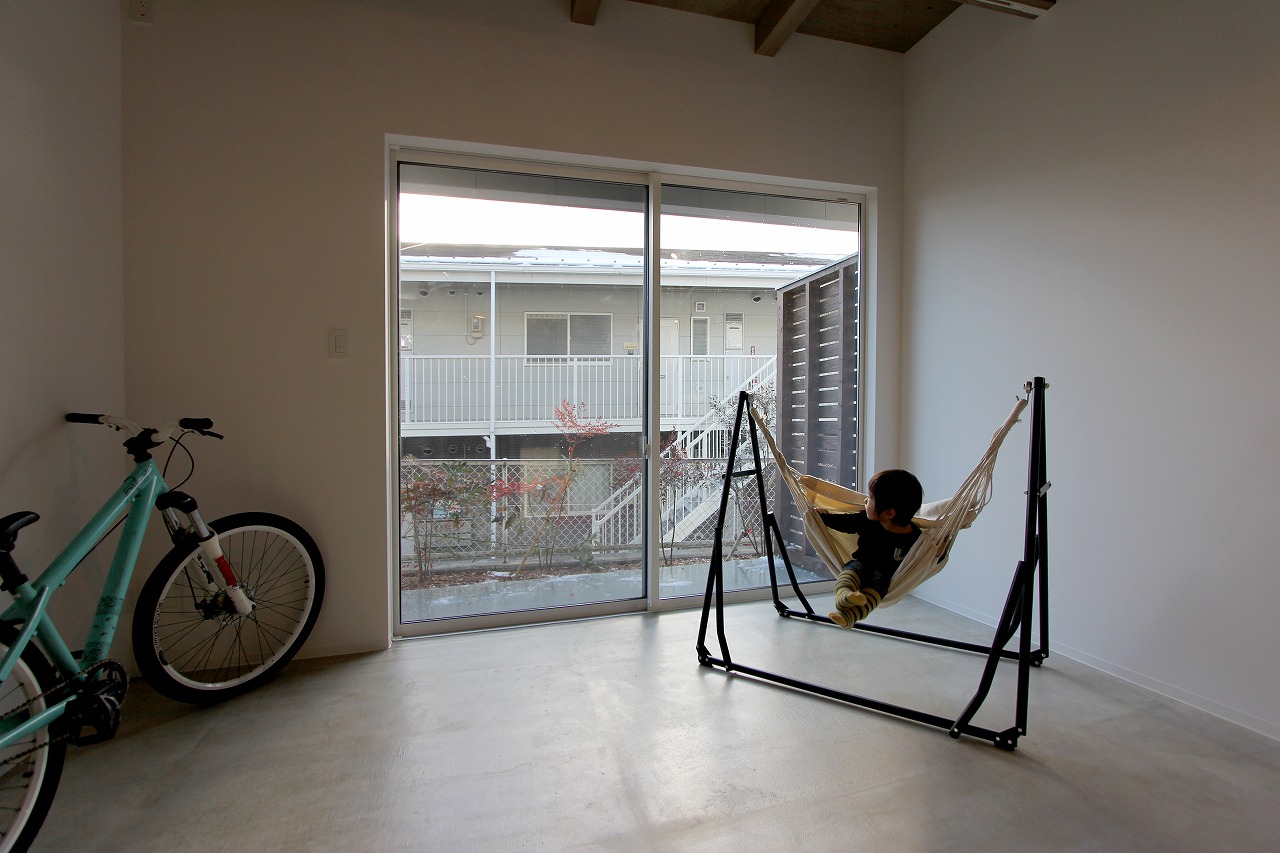 新たに隣地に賃貸アパートが建築予定なため、合わせて活用できるような計画となっている。