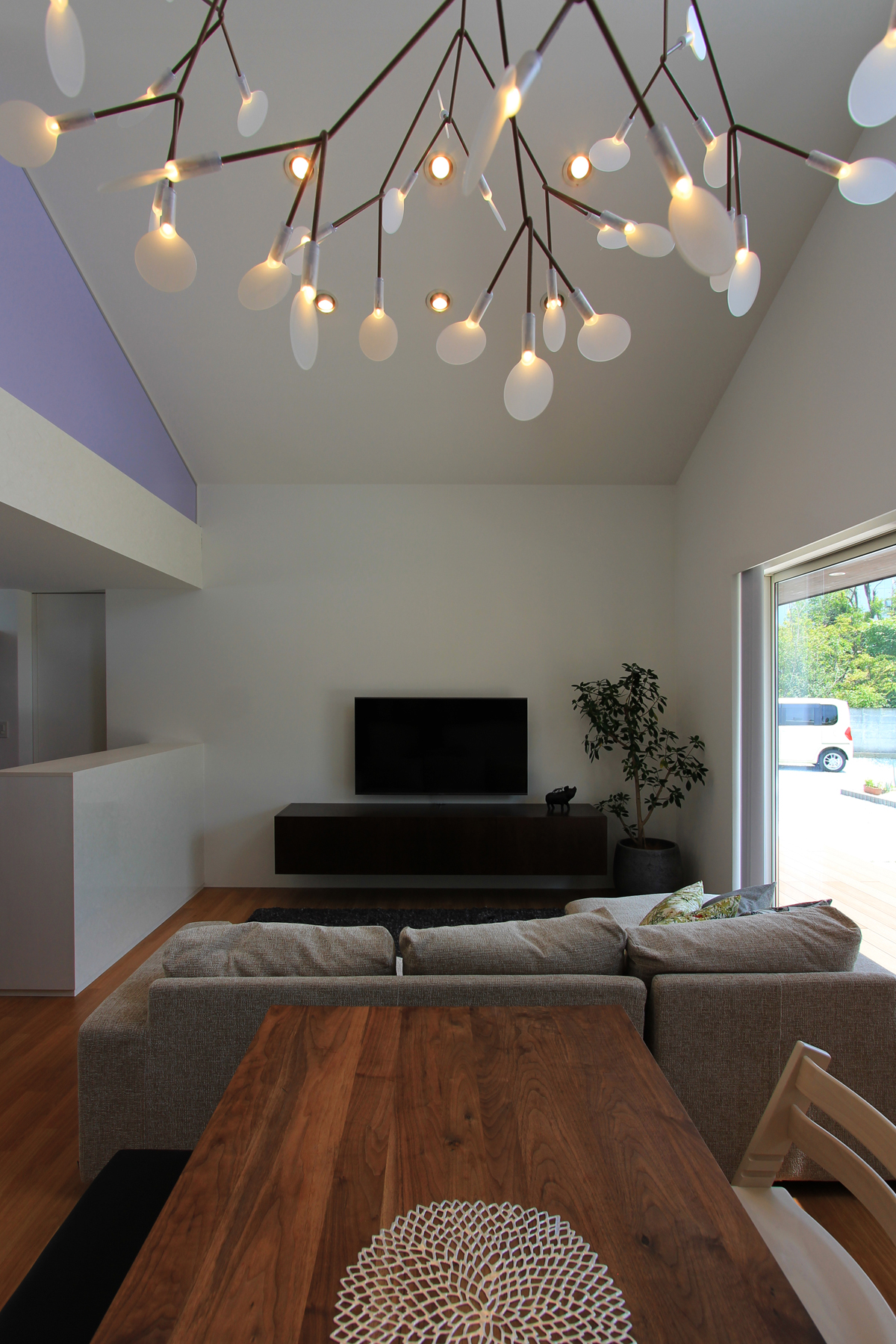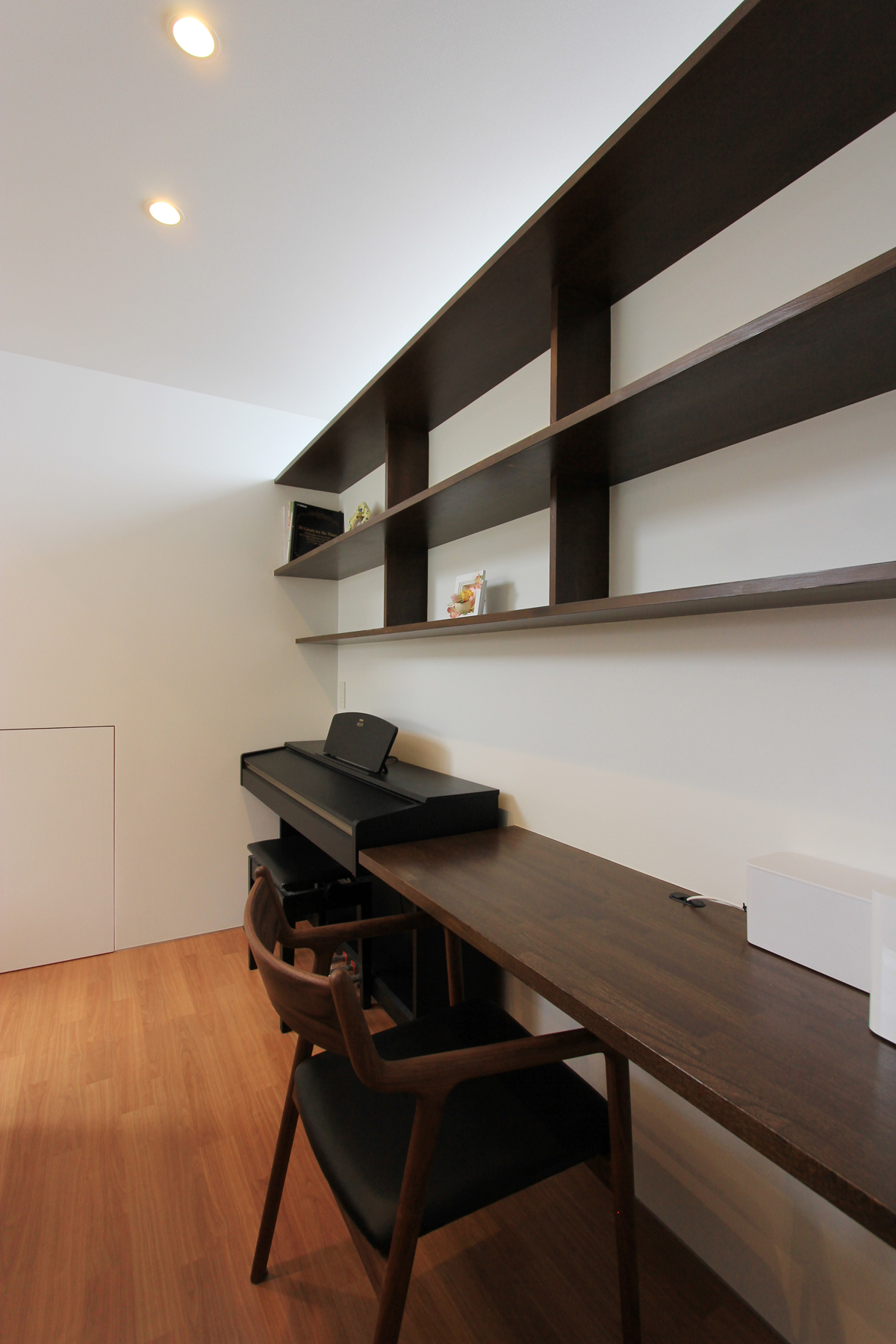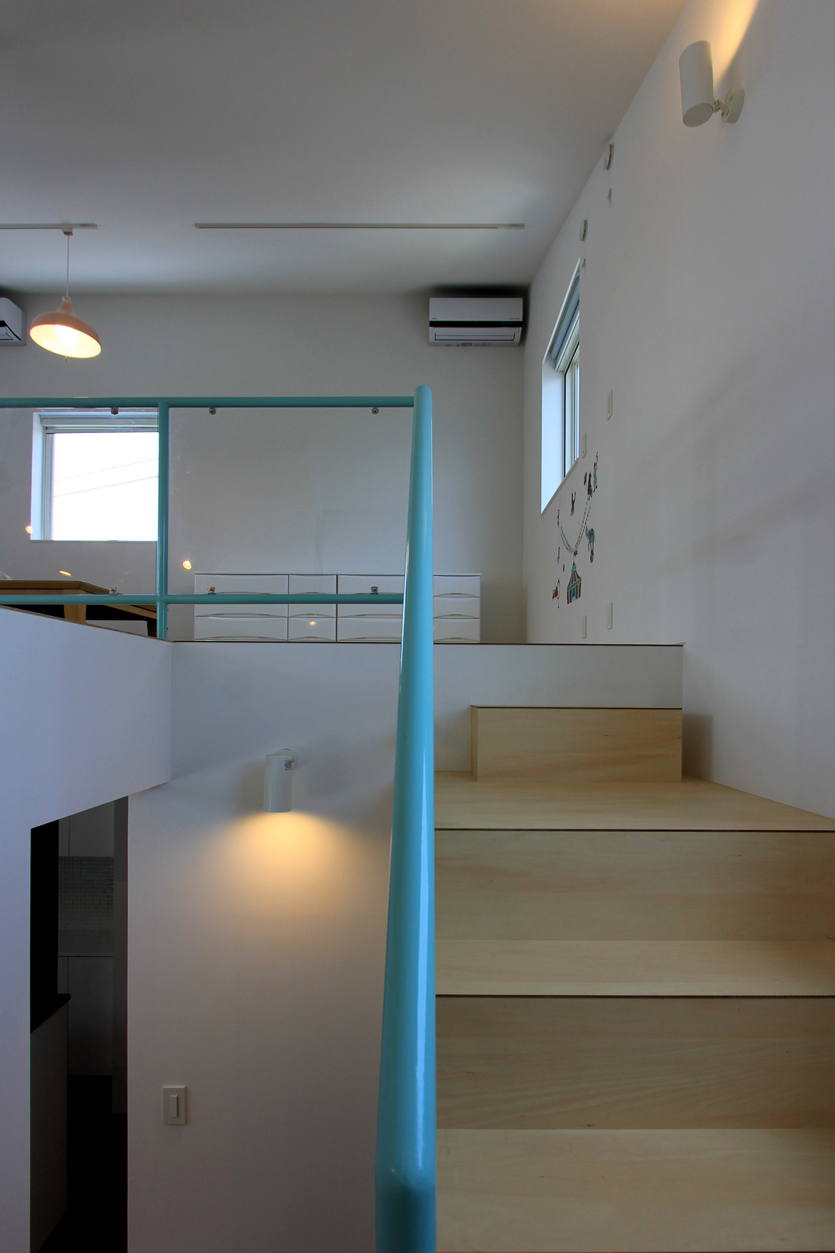 子供部屋だけを2階に設け、子どもの成長に合わせて可変な間仕切りにも対応できるようにフレキシブルなワンルームとした。唯一の2階からは朝日連峰が望めるように開口部にも気を使い検討された。