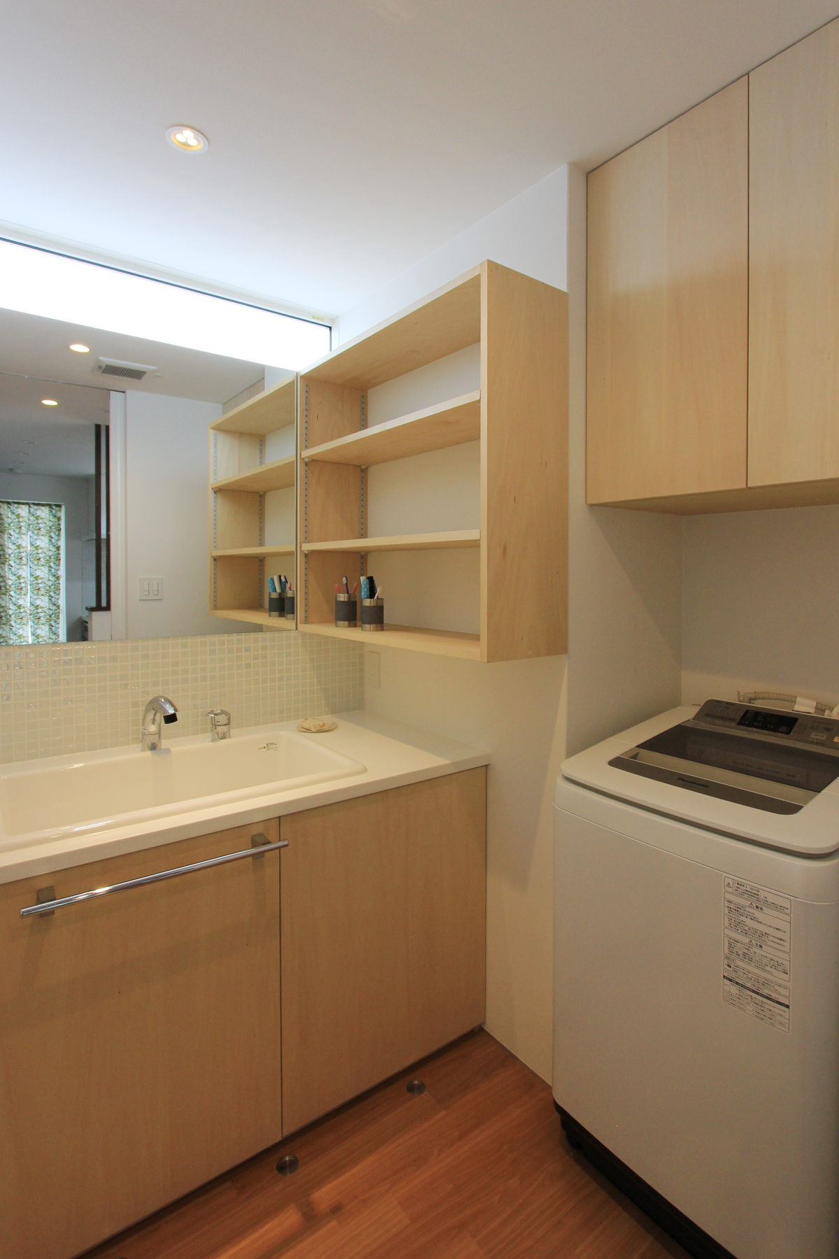 設備においては雪国という特徴からエコキュートの貯湯部を室内に設けるプランとし、直接土間仕上げによる基礎蓄熱暖房により1階は全室床暖房となり、ワンルームによる温度差が生じないように配慮した。